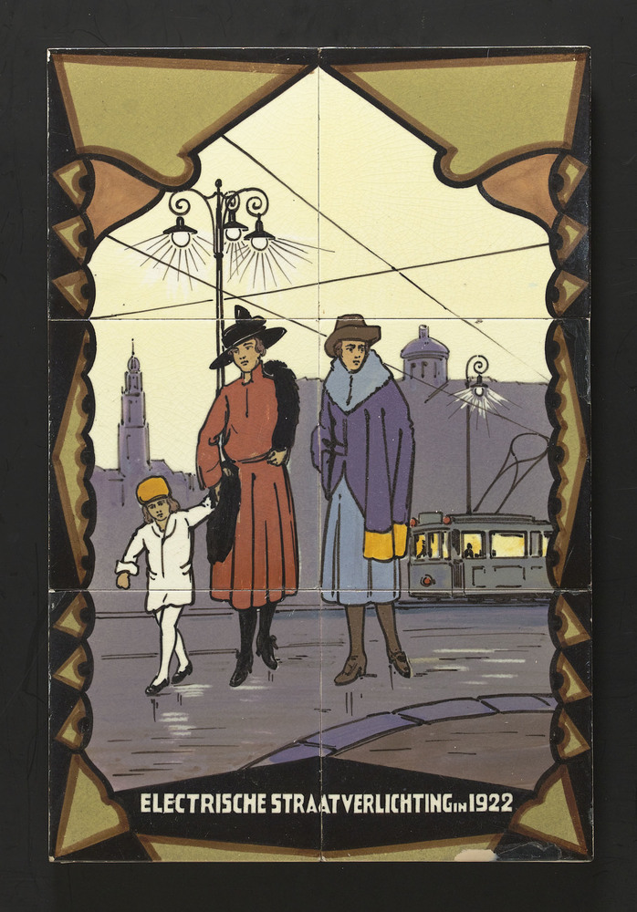 Tegeltableau van keramiek, tinglazuur, voorstellende...