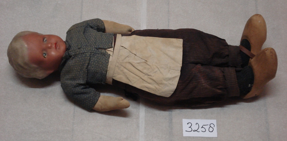 pop. Jongenspop met hoofd van kunststof, lijf van ka...