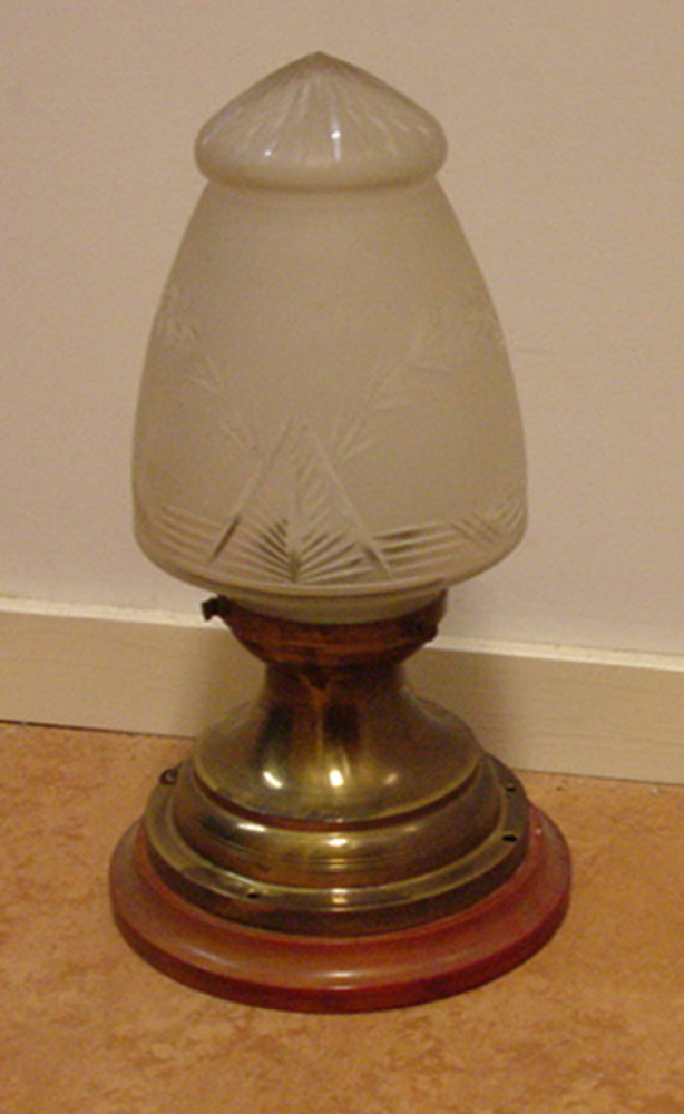 Lamp elektrisch van hout en glas circa 1920-1940