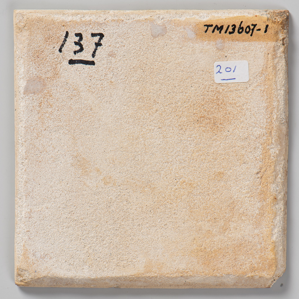 Tegel van aardewerk met tinglazuur voorstellende: or...