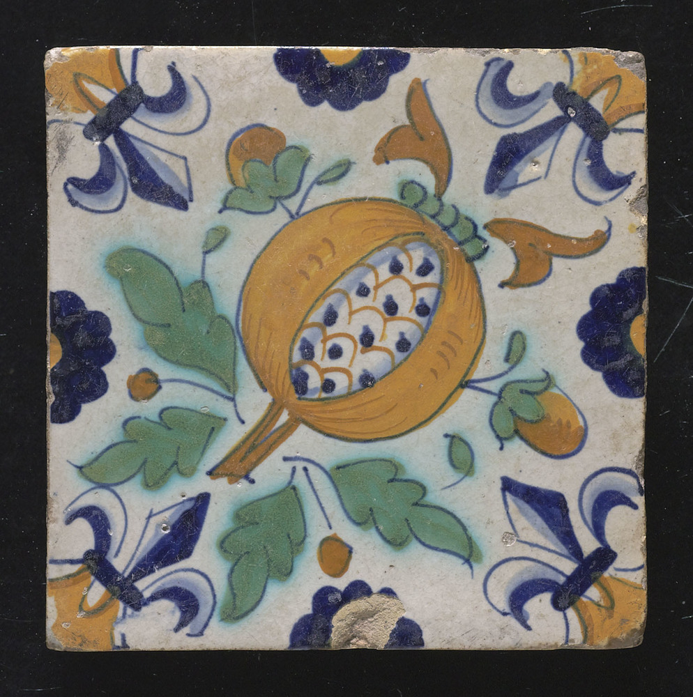 Tegel van keramiek met tinglazuur, voorstellende: or...