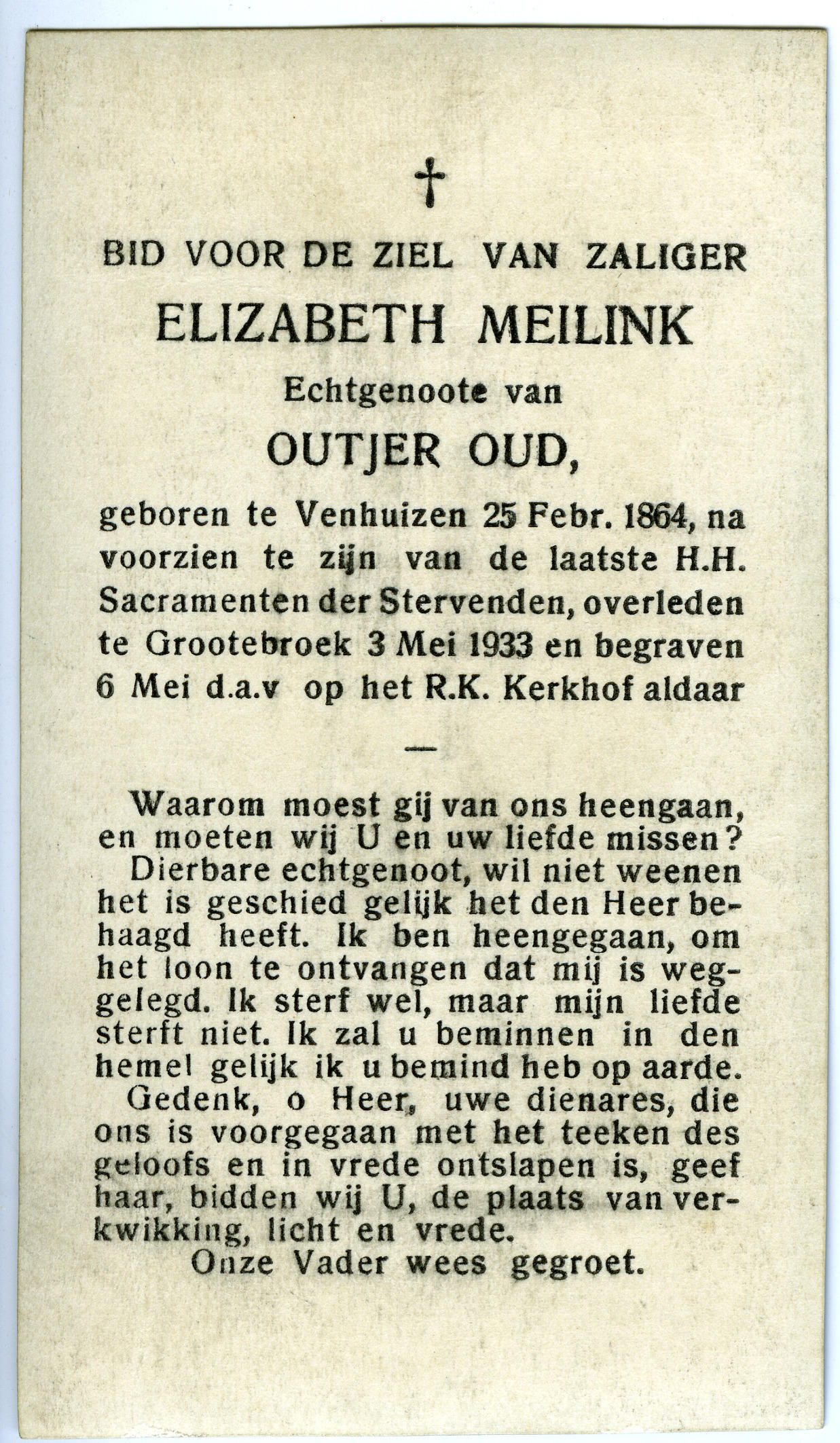 Bidprentje van Elizabeth Meilink, 1933 (bidprentje)