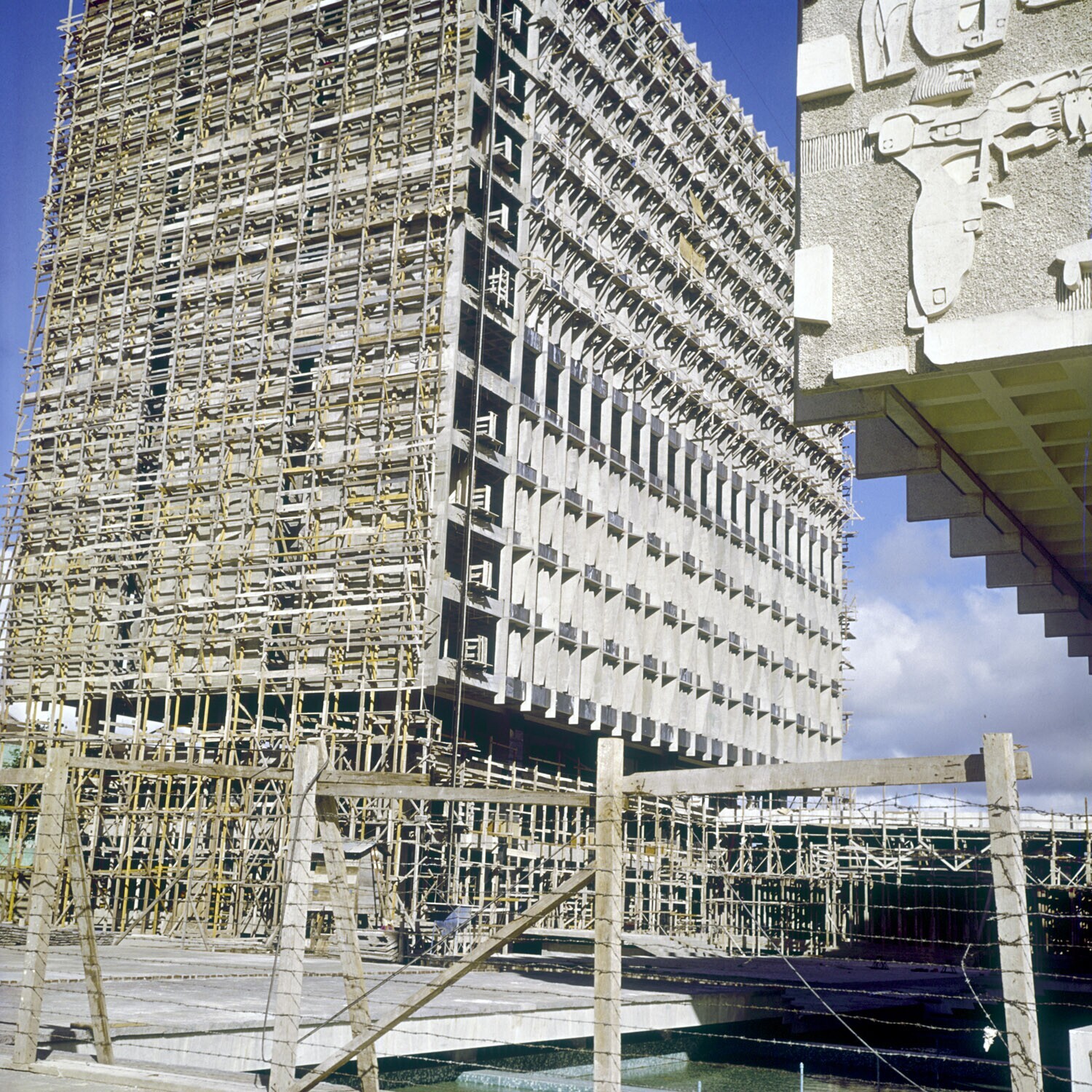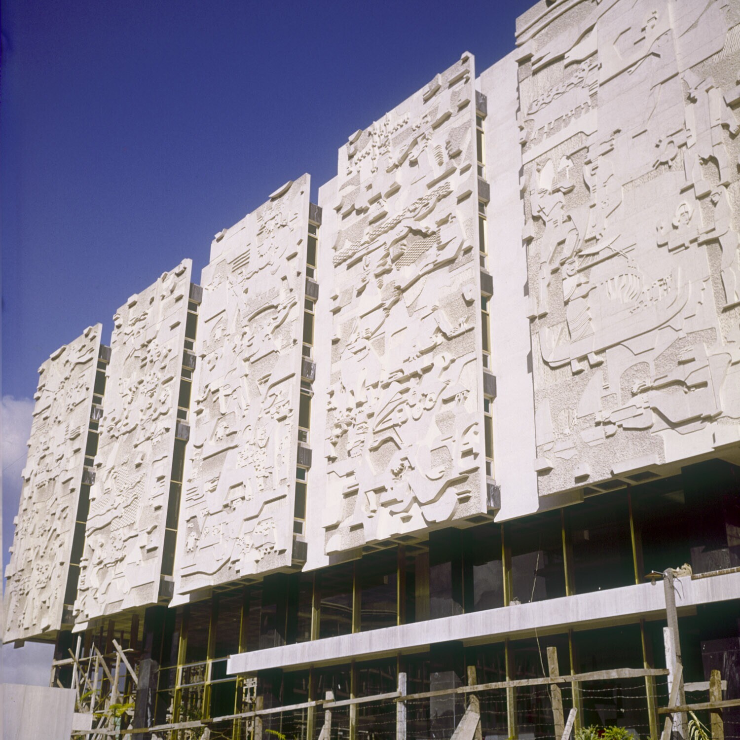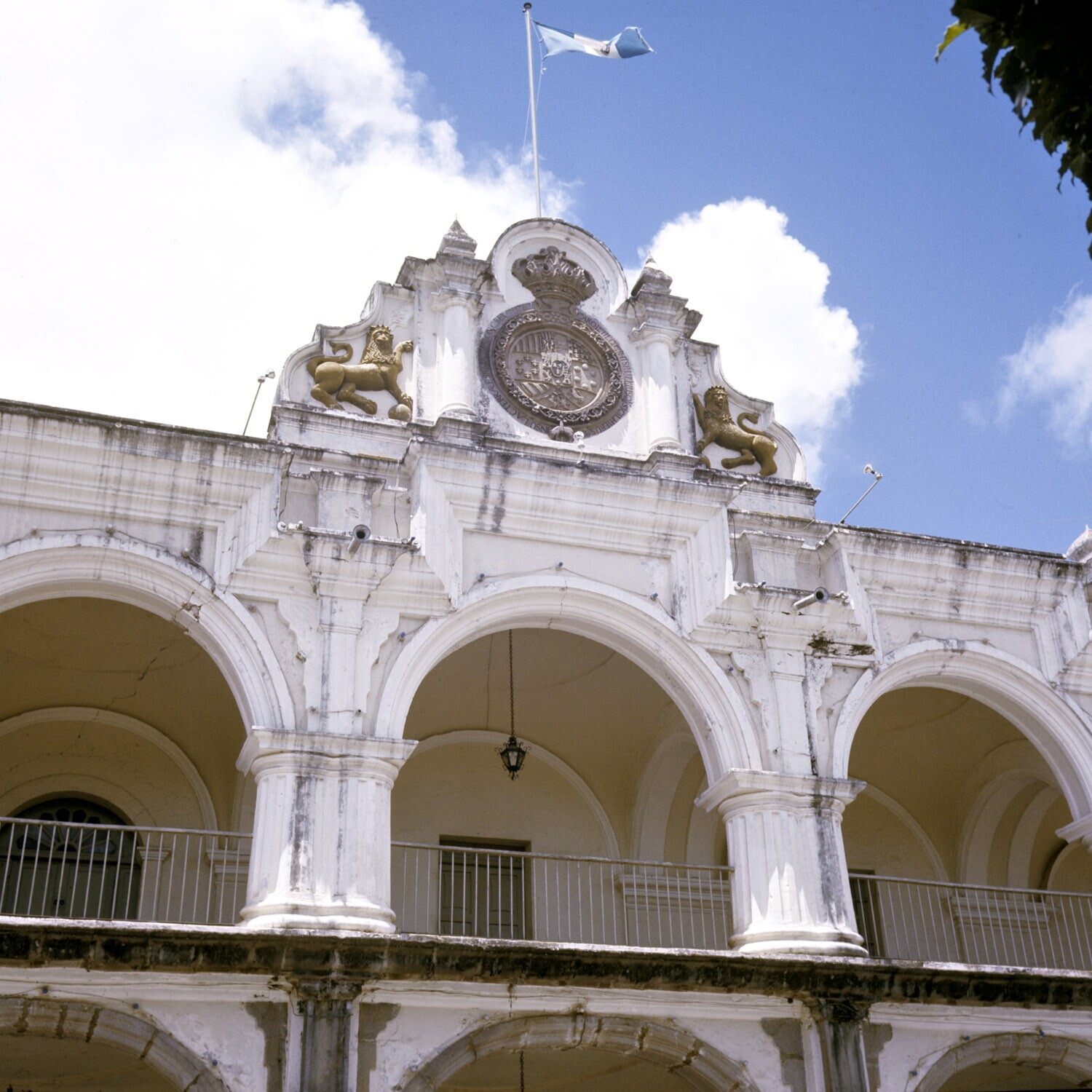 Gevel op de gallerijen bij de Zacalo het vroegere pa...