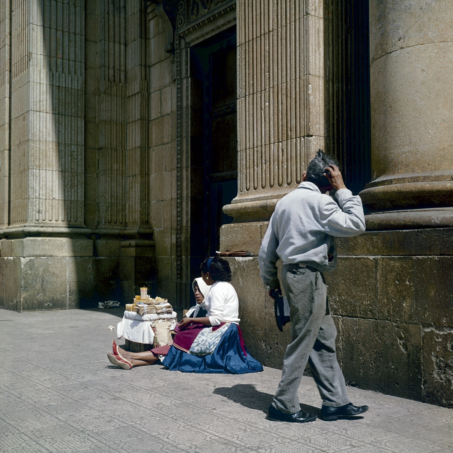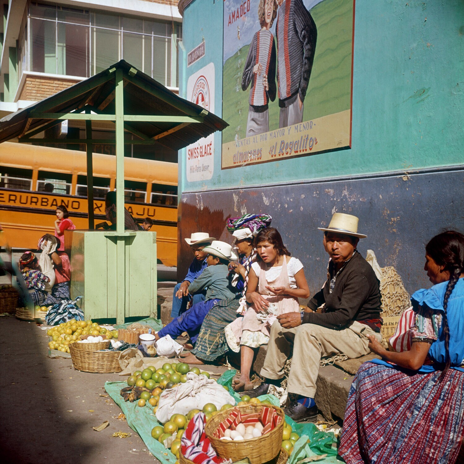 Maya vrouwen steken de straat over in Guatemala-Stad...