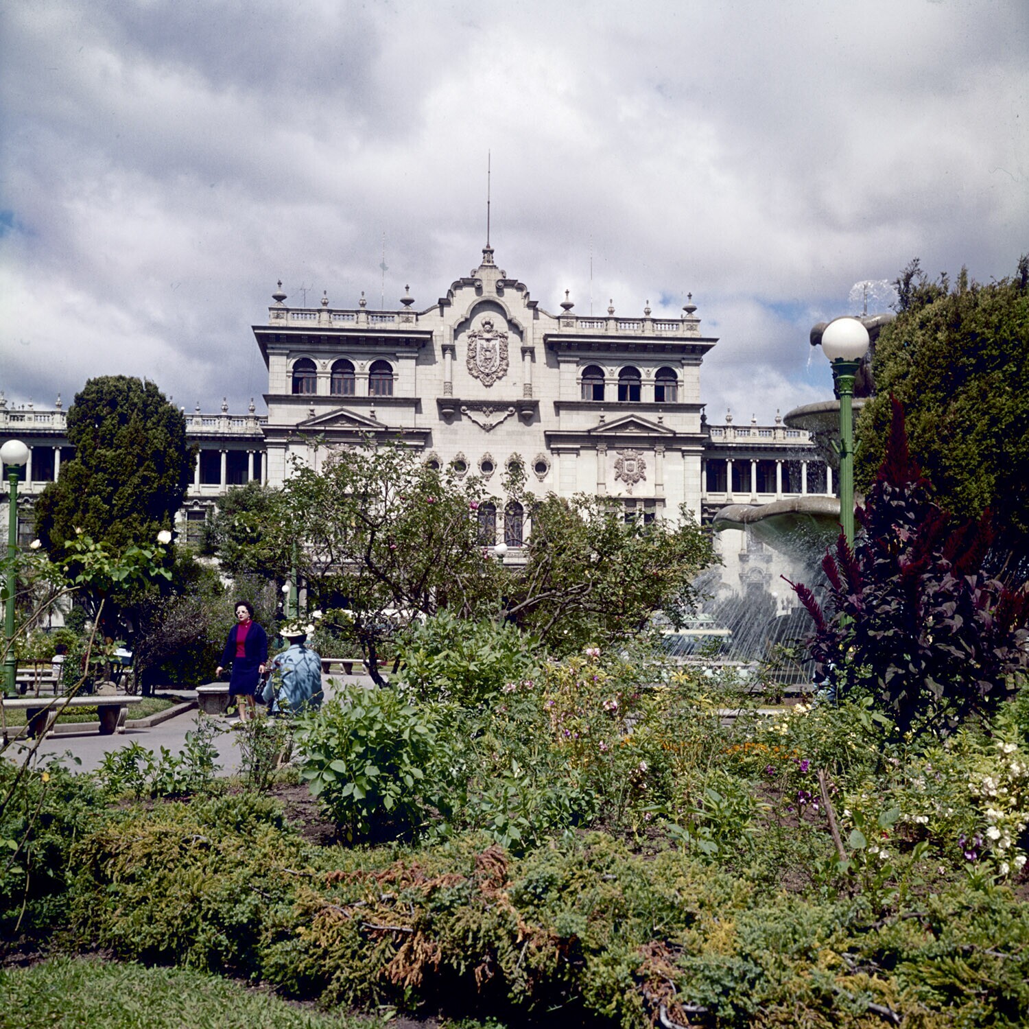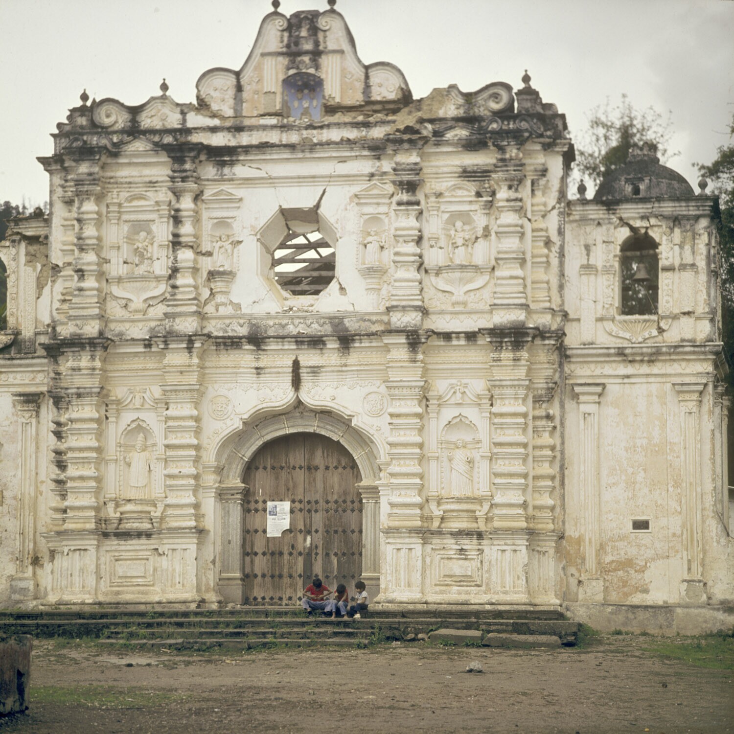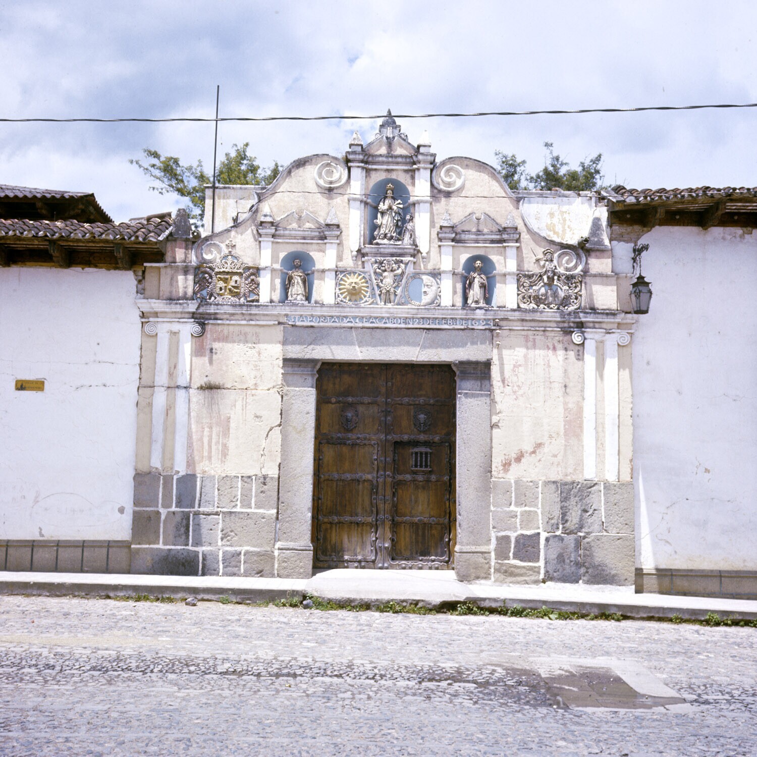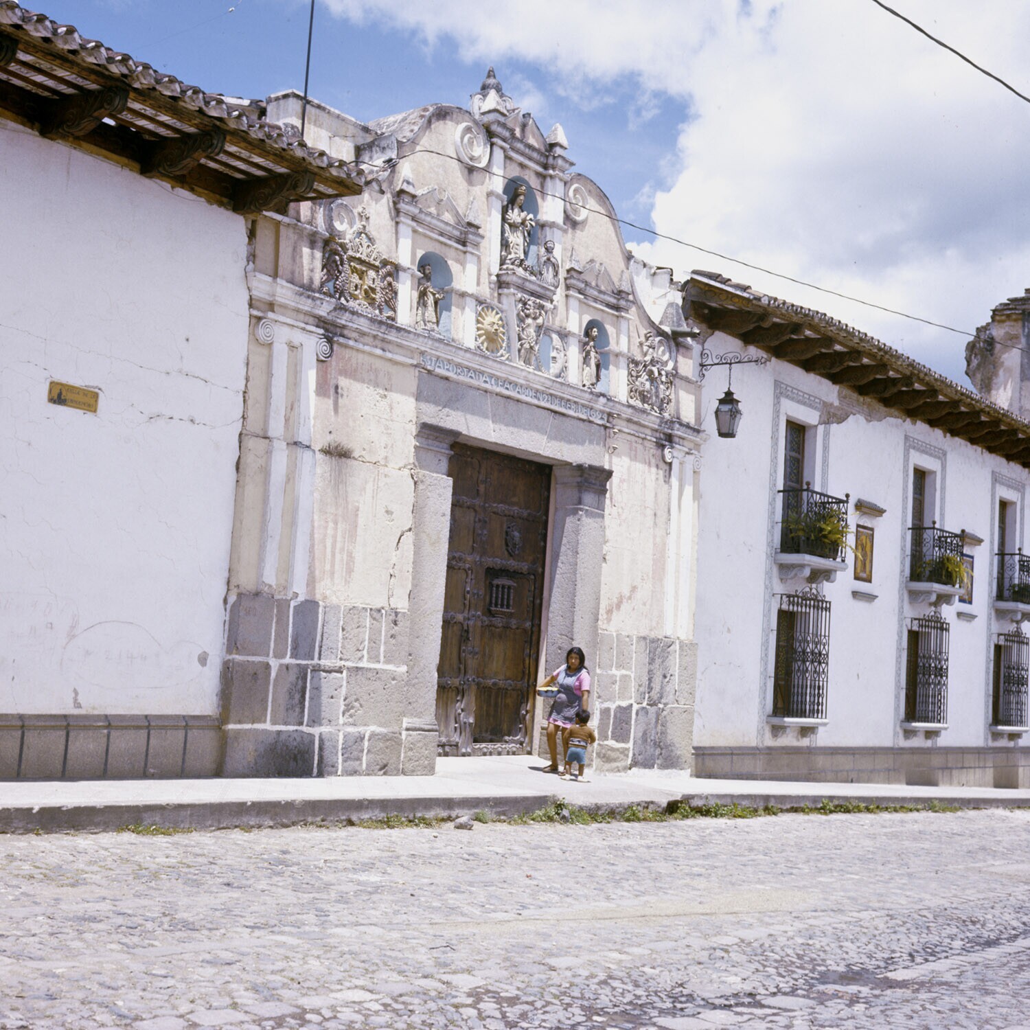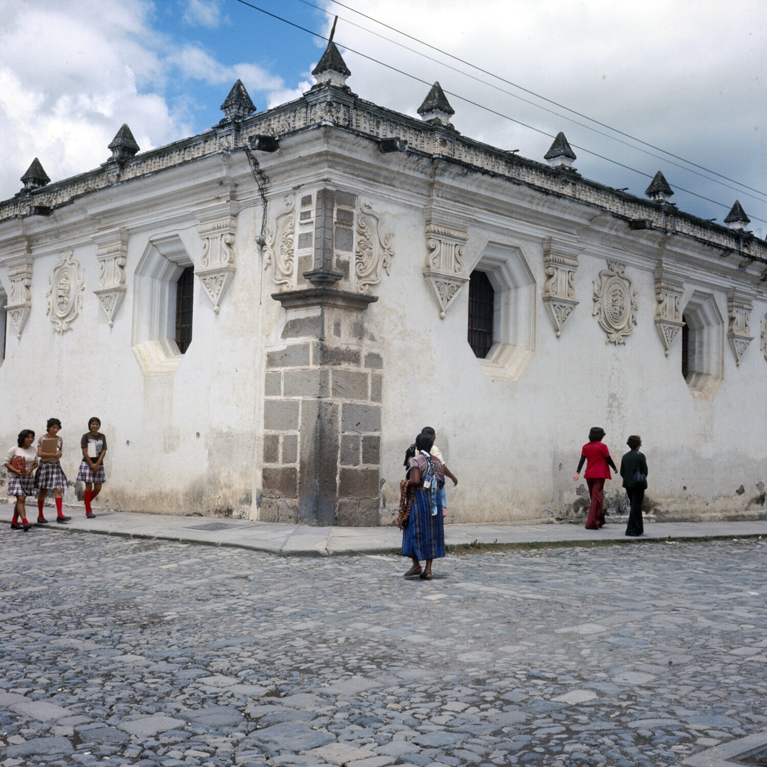 De pastorie van de Belem kerk te Antigua. Op de acht...