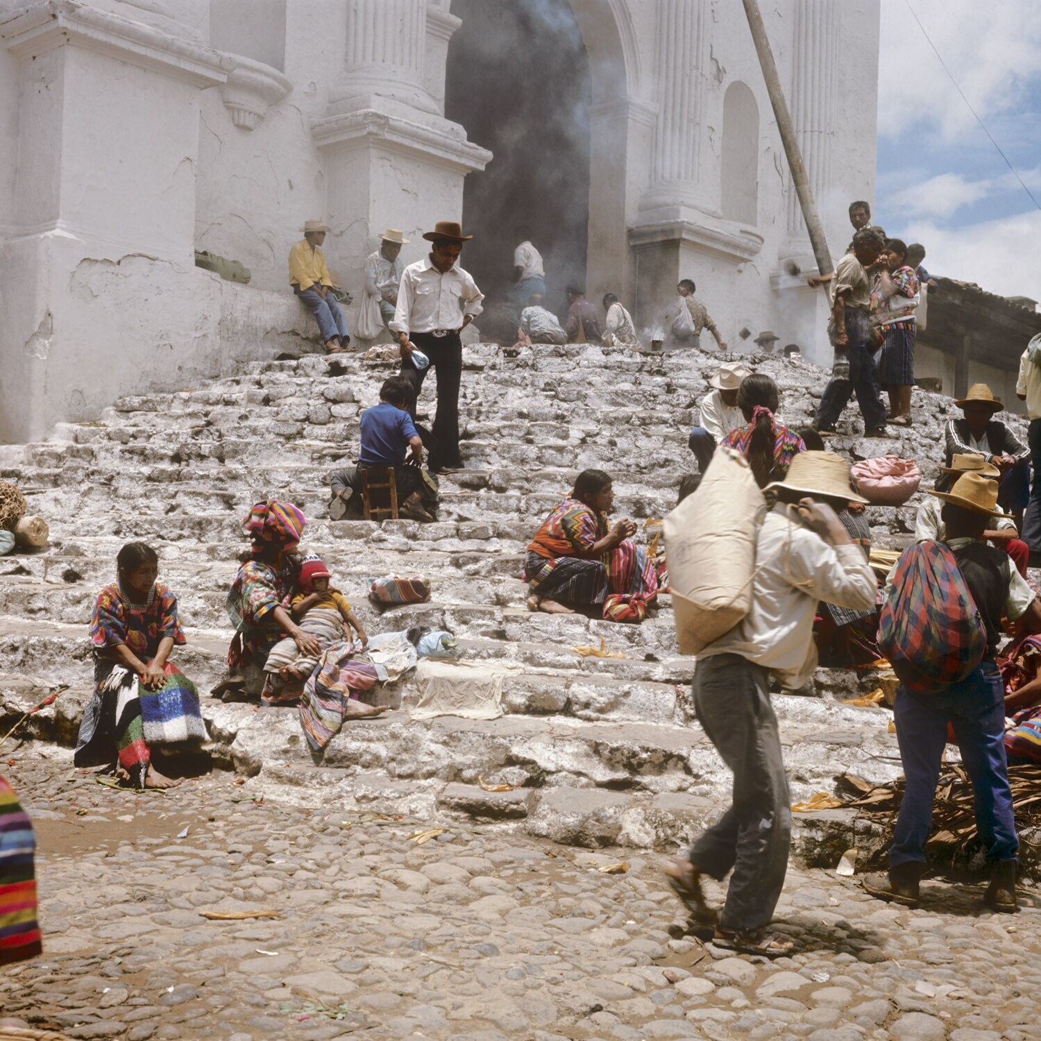 Offerende mensen op de trappen van de Santo Tomas ke...