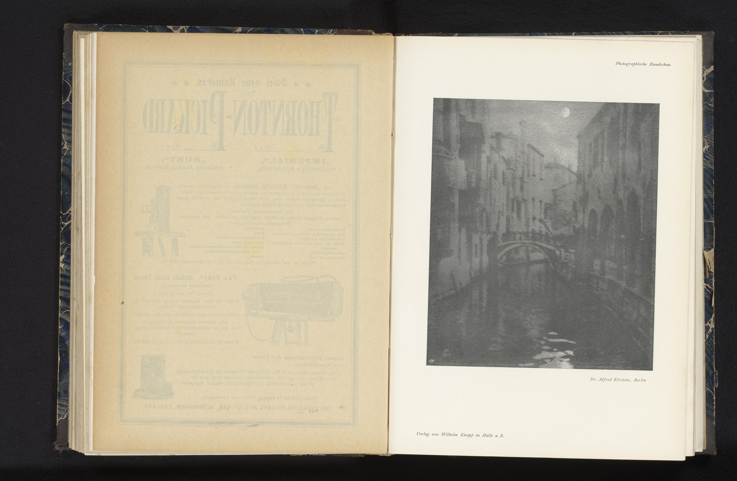 Gezicht op een gracht of kanaal en een brug, vermoed...