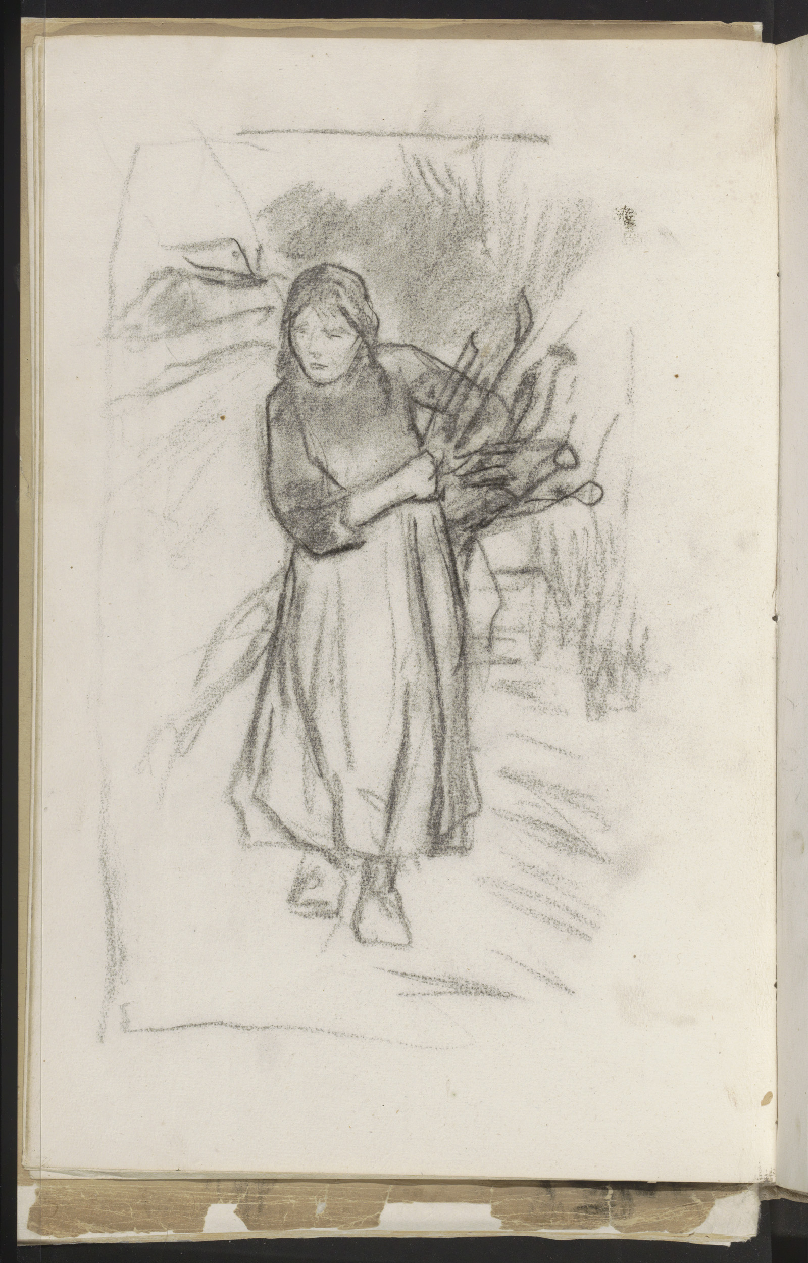 Jonge vrouw met sprokkelhout onder de arm