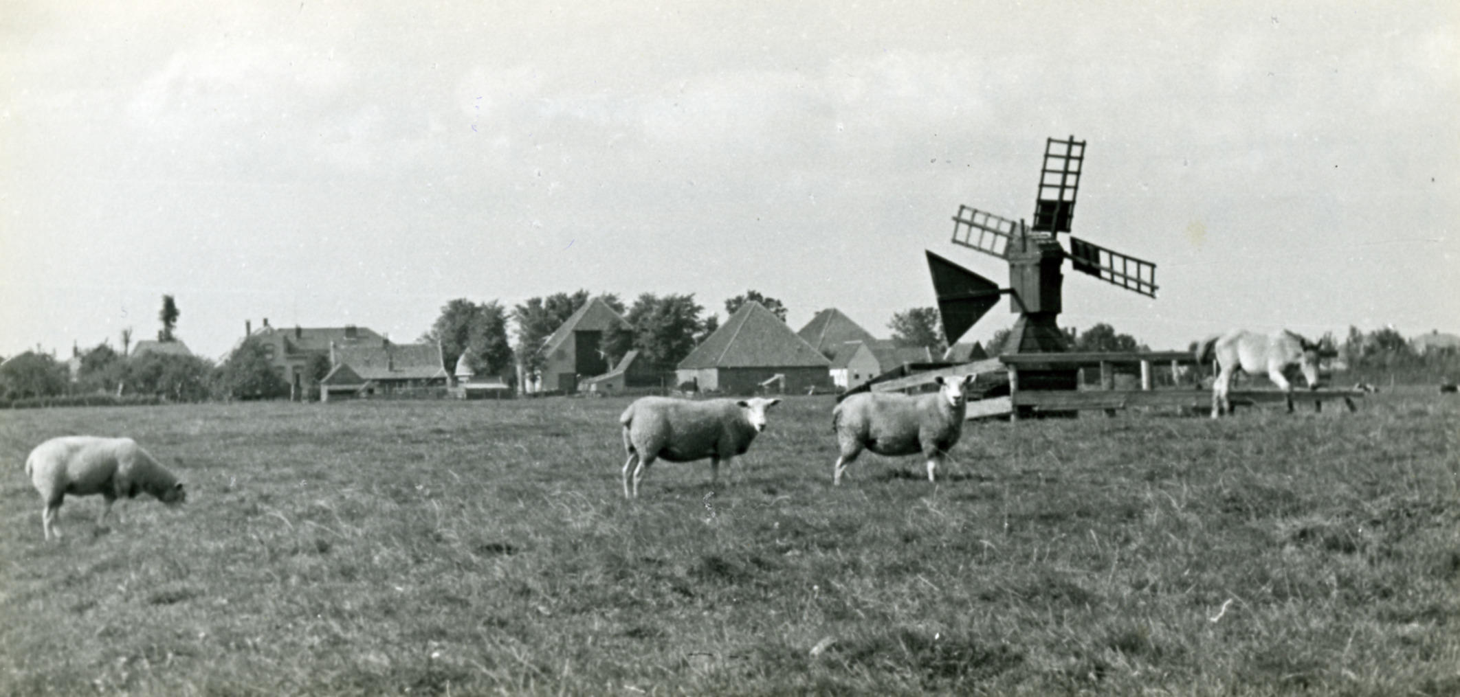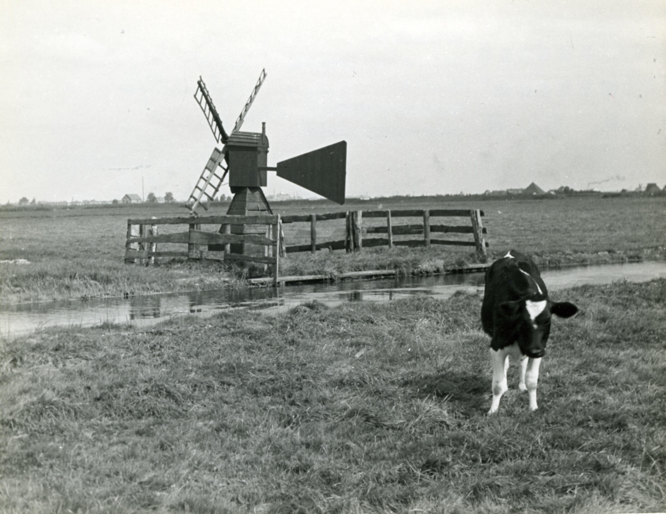 Weidemolentje bij Assendelft, 1947 (zwart-wit foto)