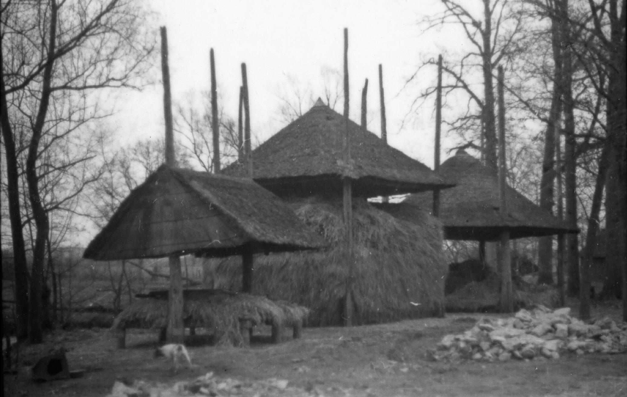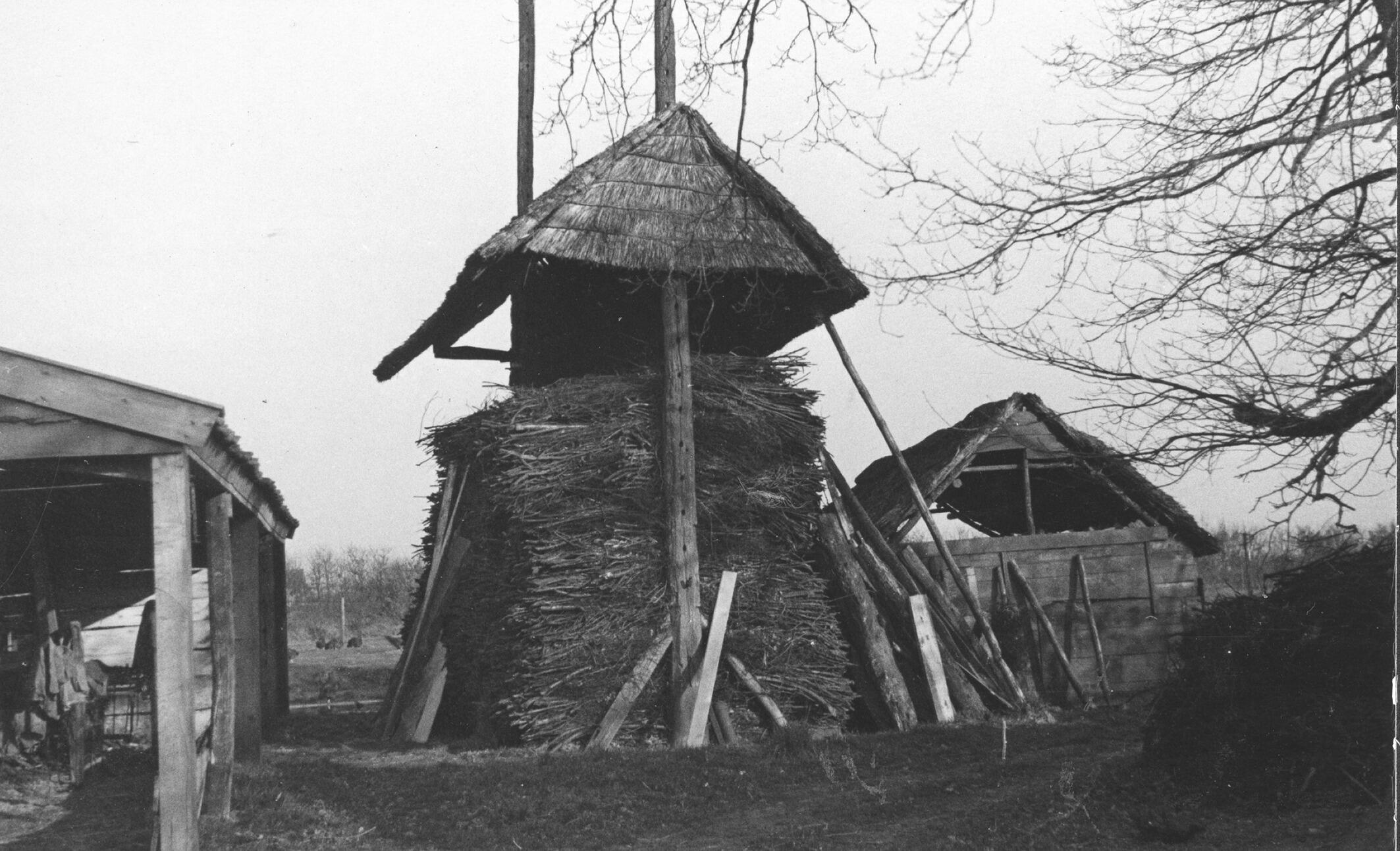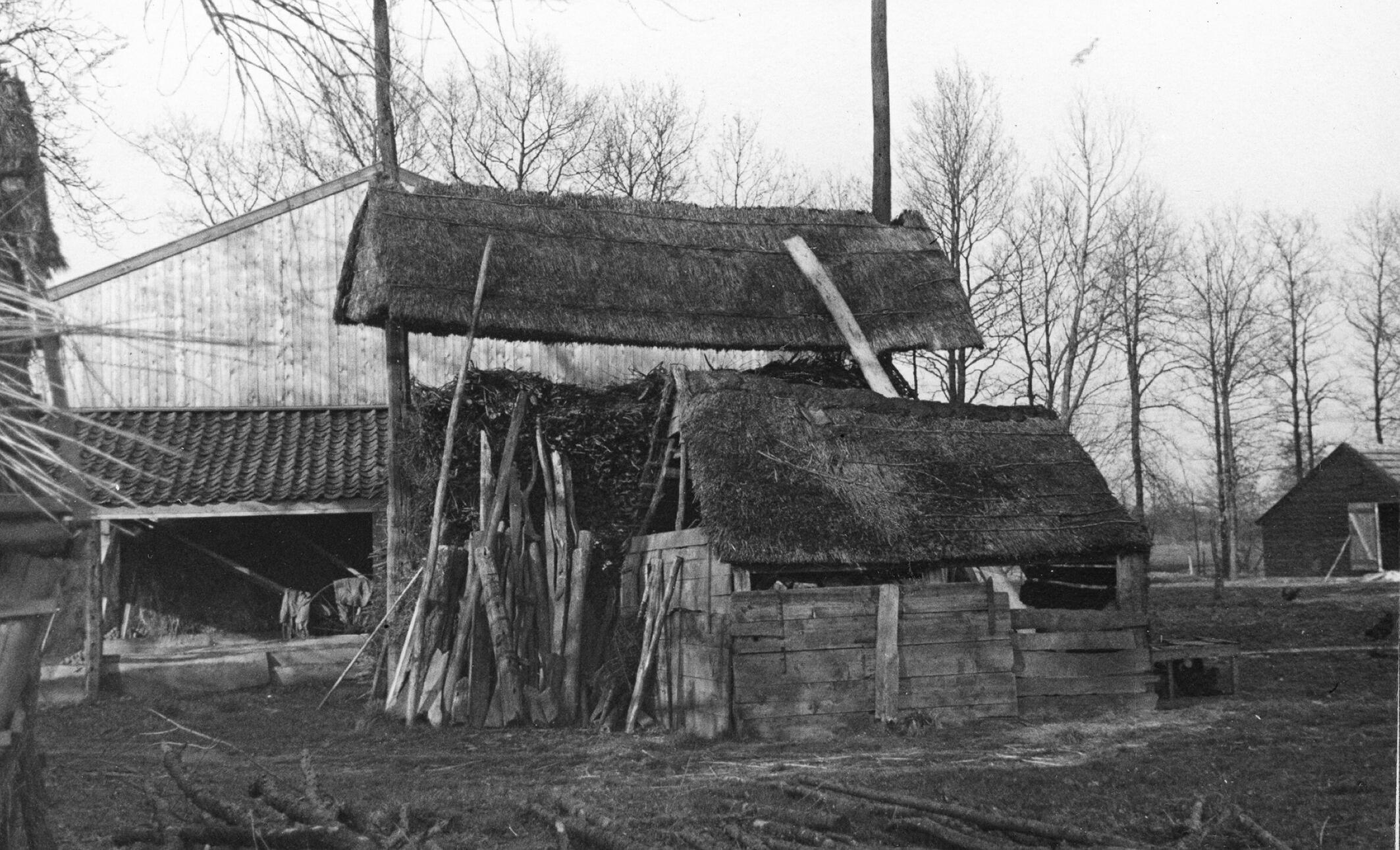 Hooiberg en schuurtje, Manen, 1938 (zwart-wit foto)
