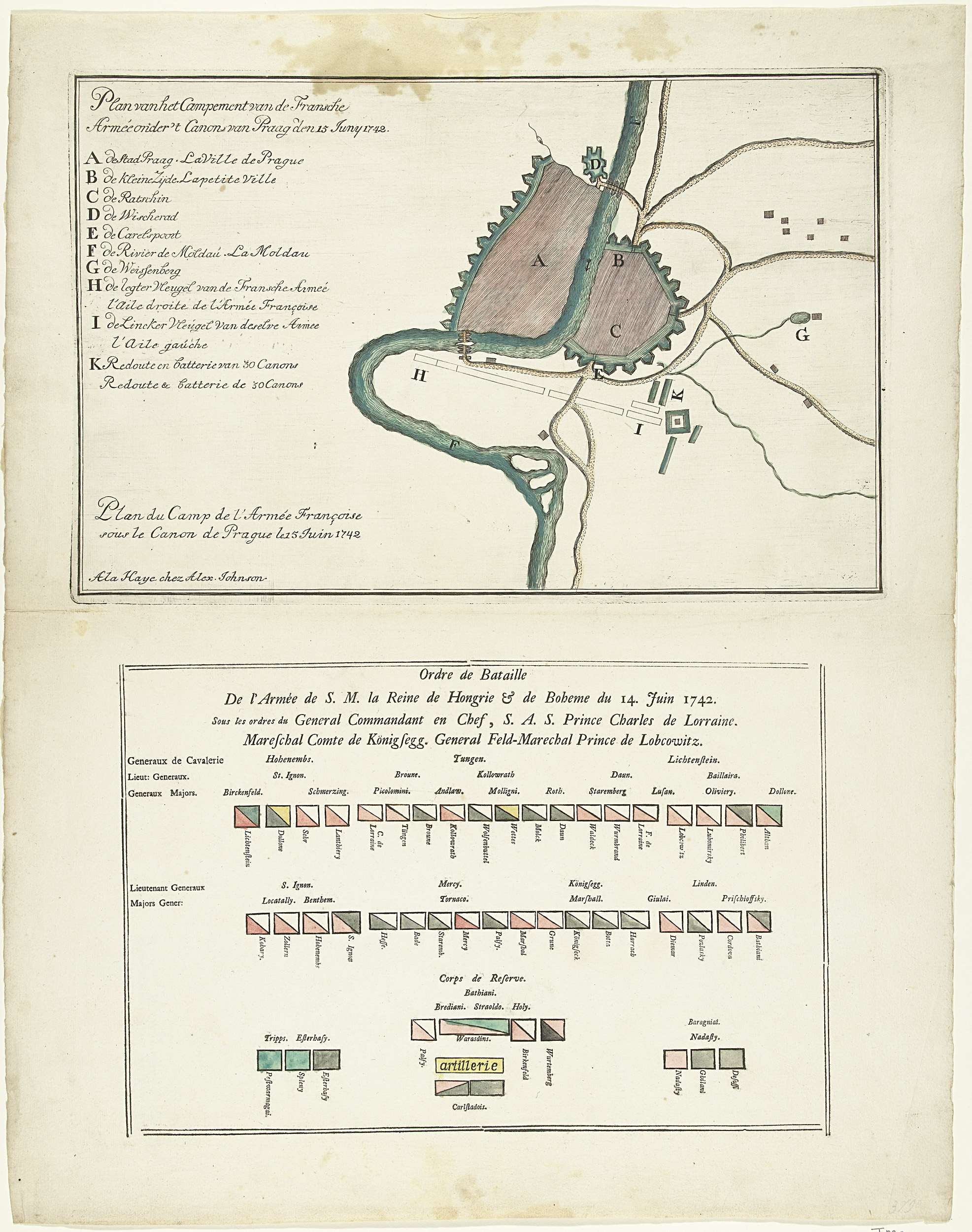 Plan en slagorde van de legers bij Praag op 14-15 ju...