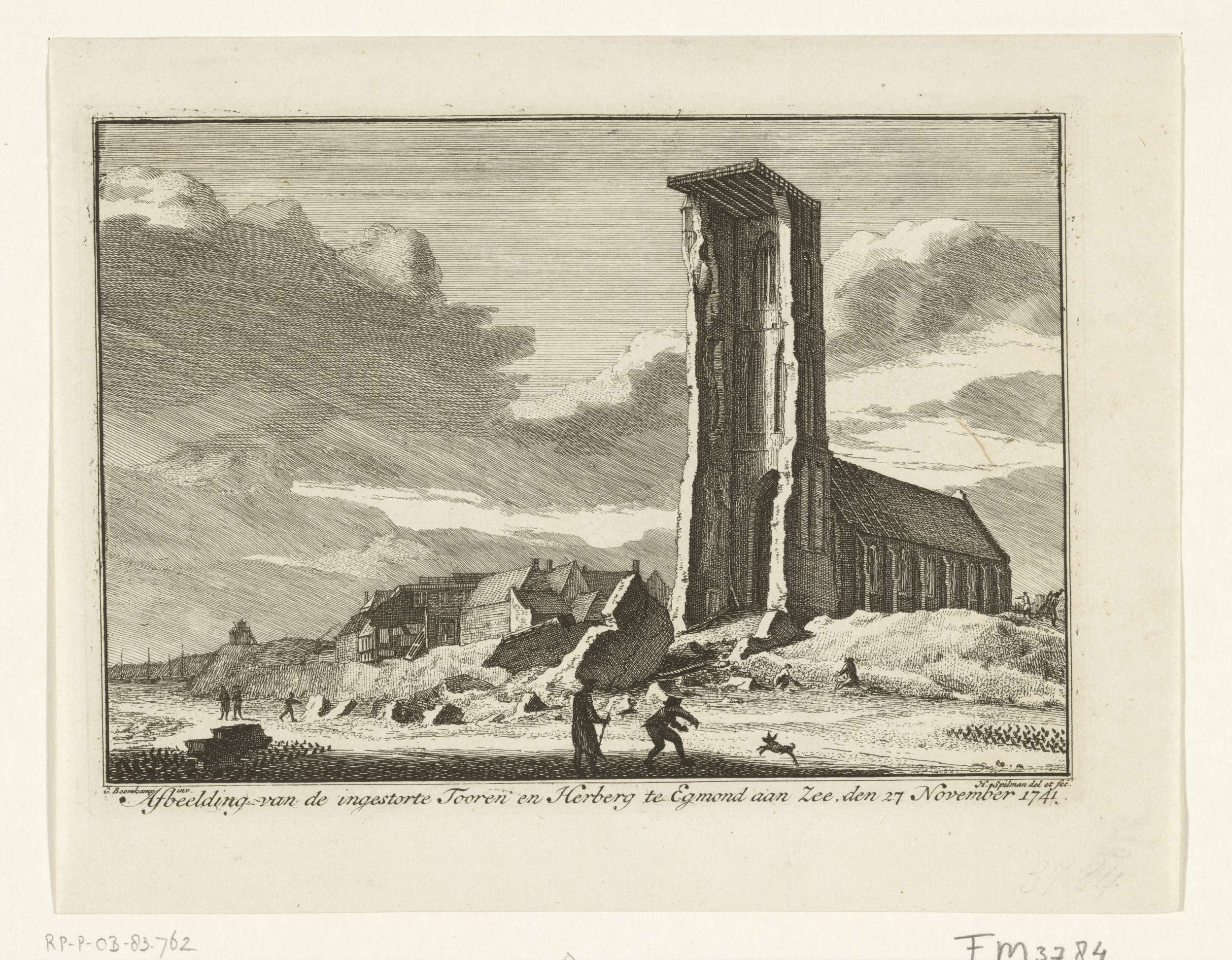 Ingestorte toren van de kerk te Egmond aan Zee, 1741