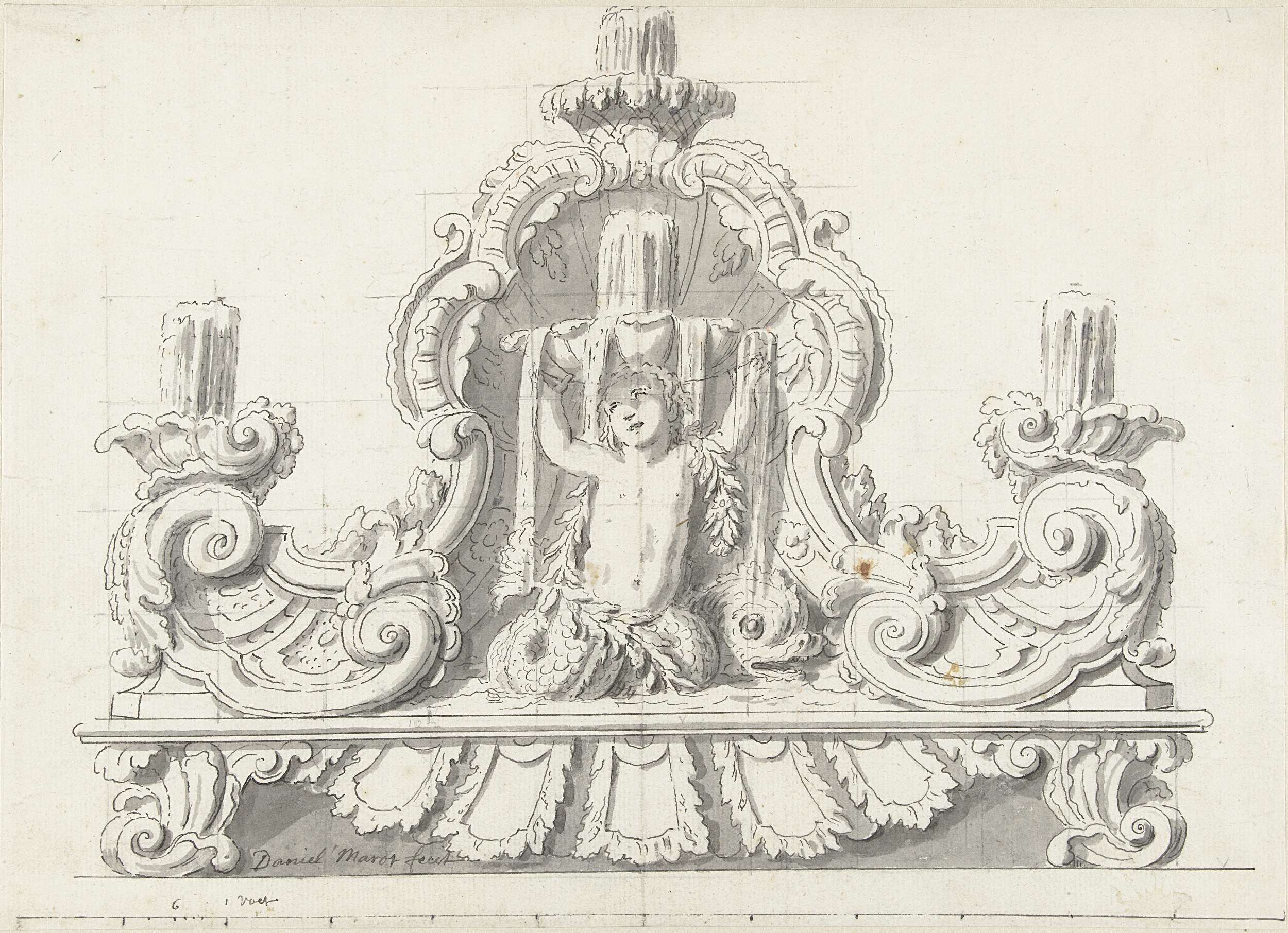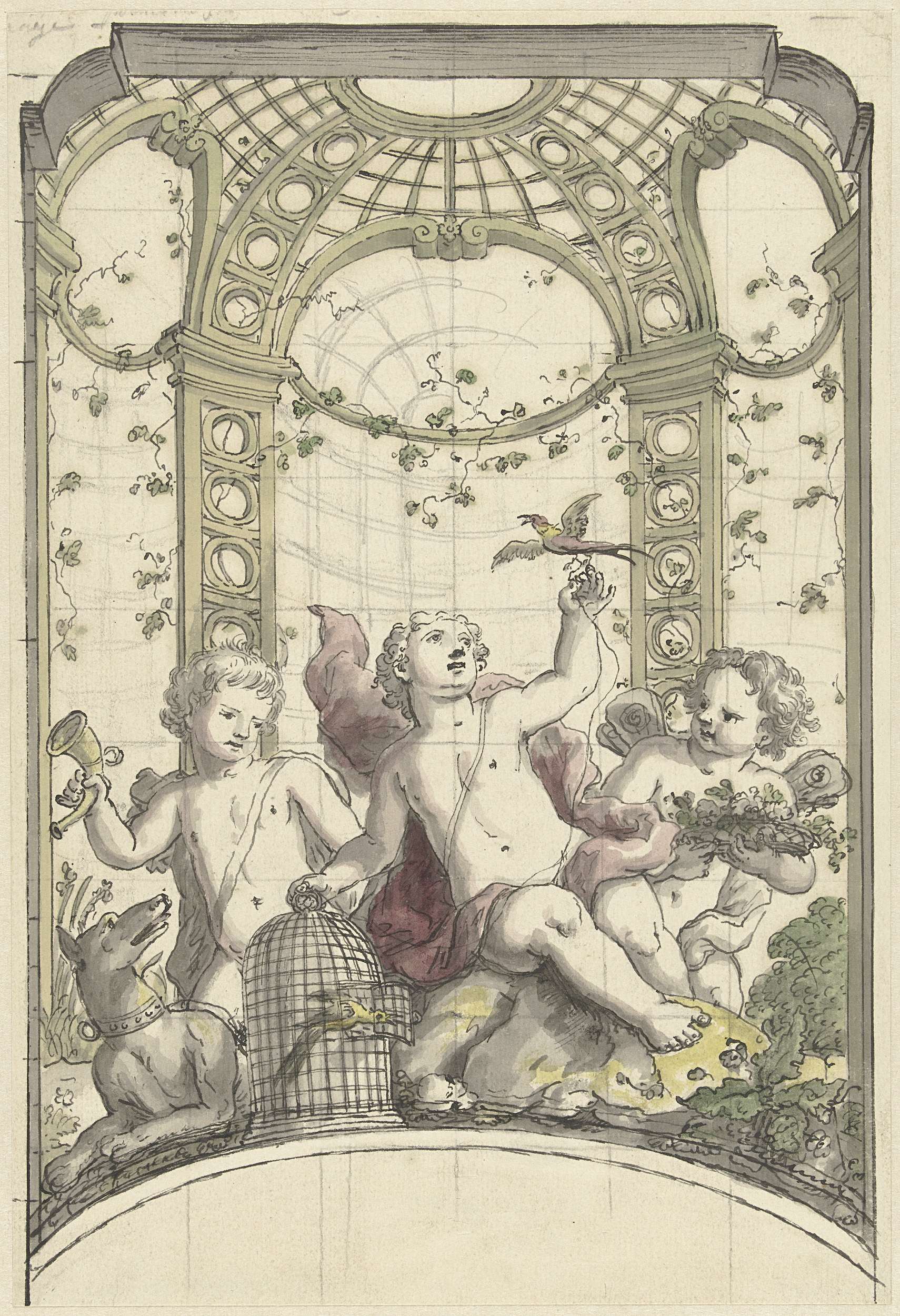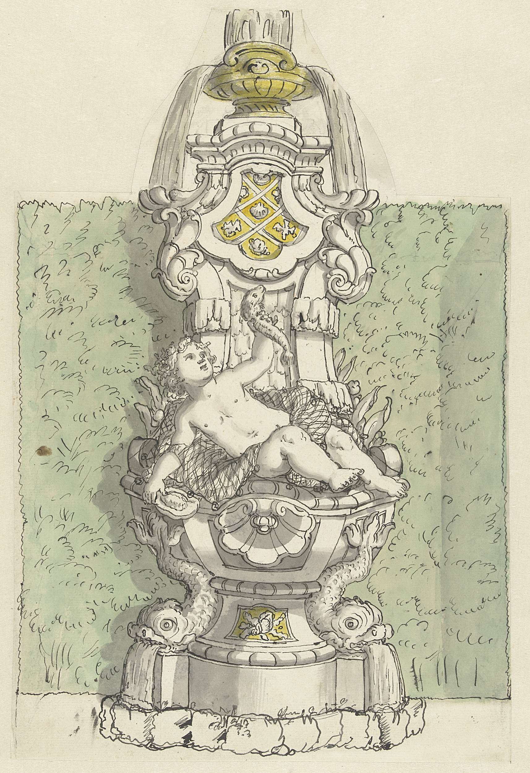 Vier ontwerpen voor een fontein: Cupido met zwaan