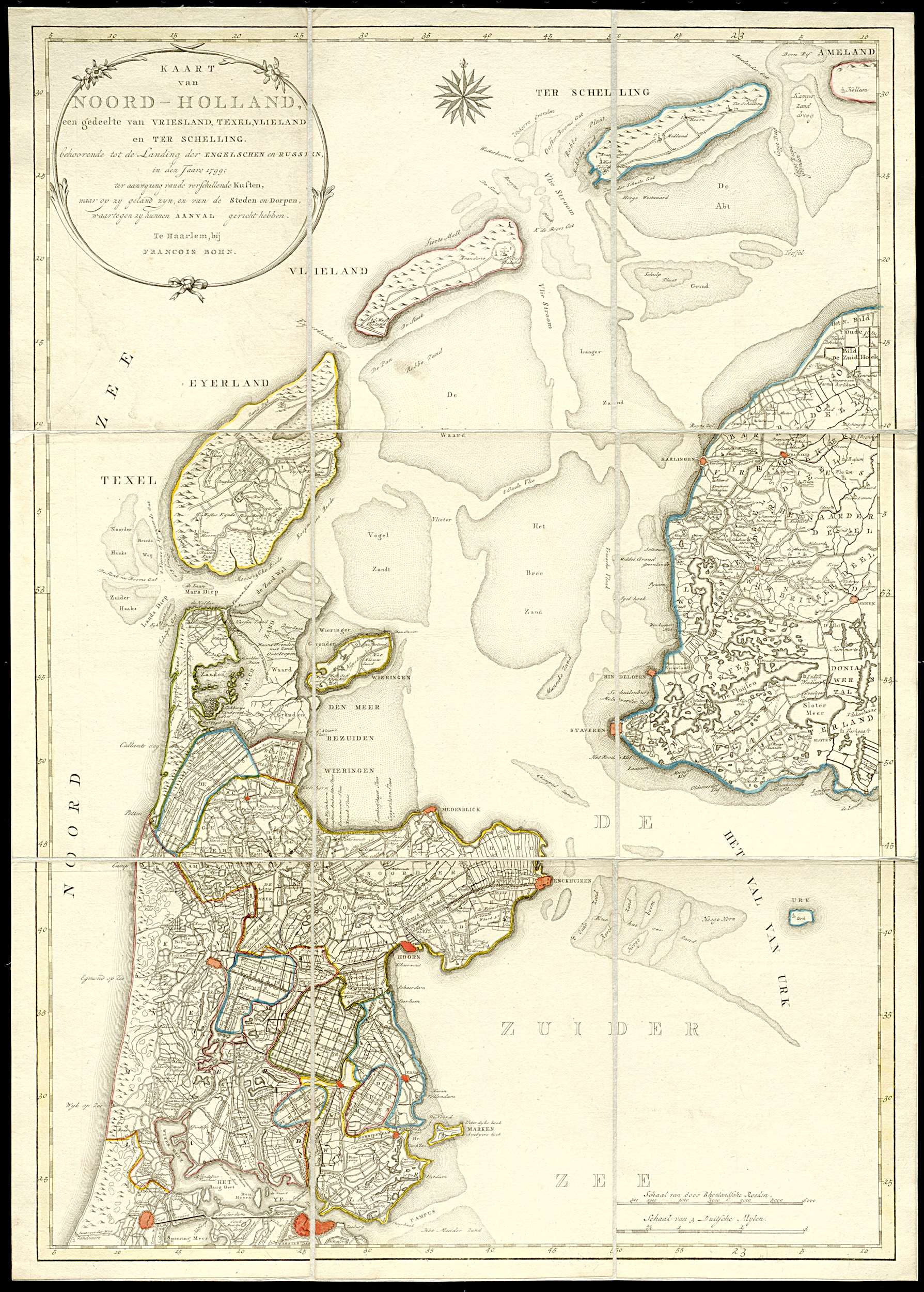 Kaart van Noord-Holland met de landingsplaatsen van ...