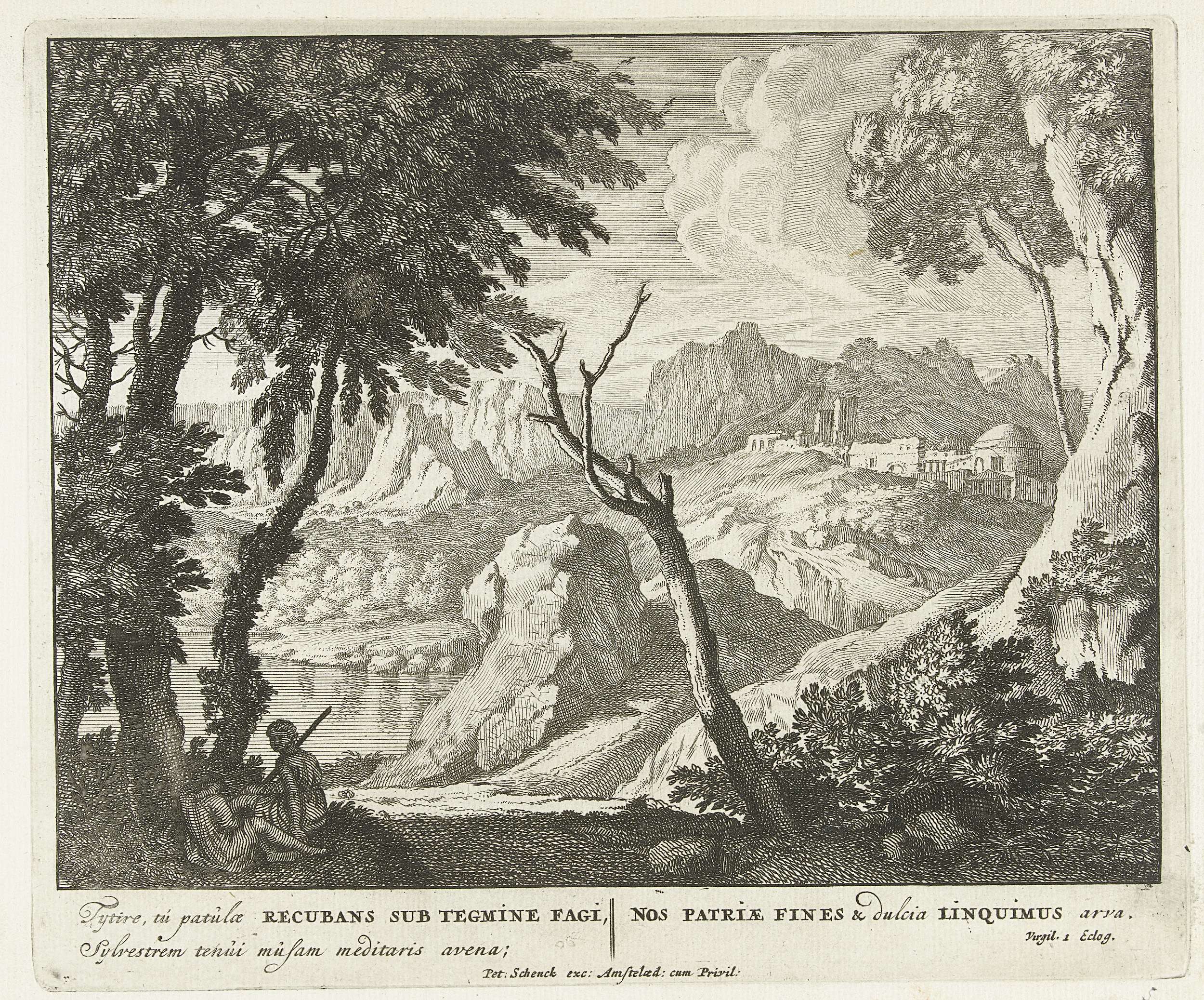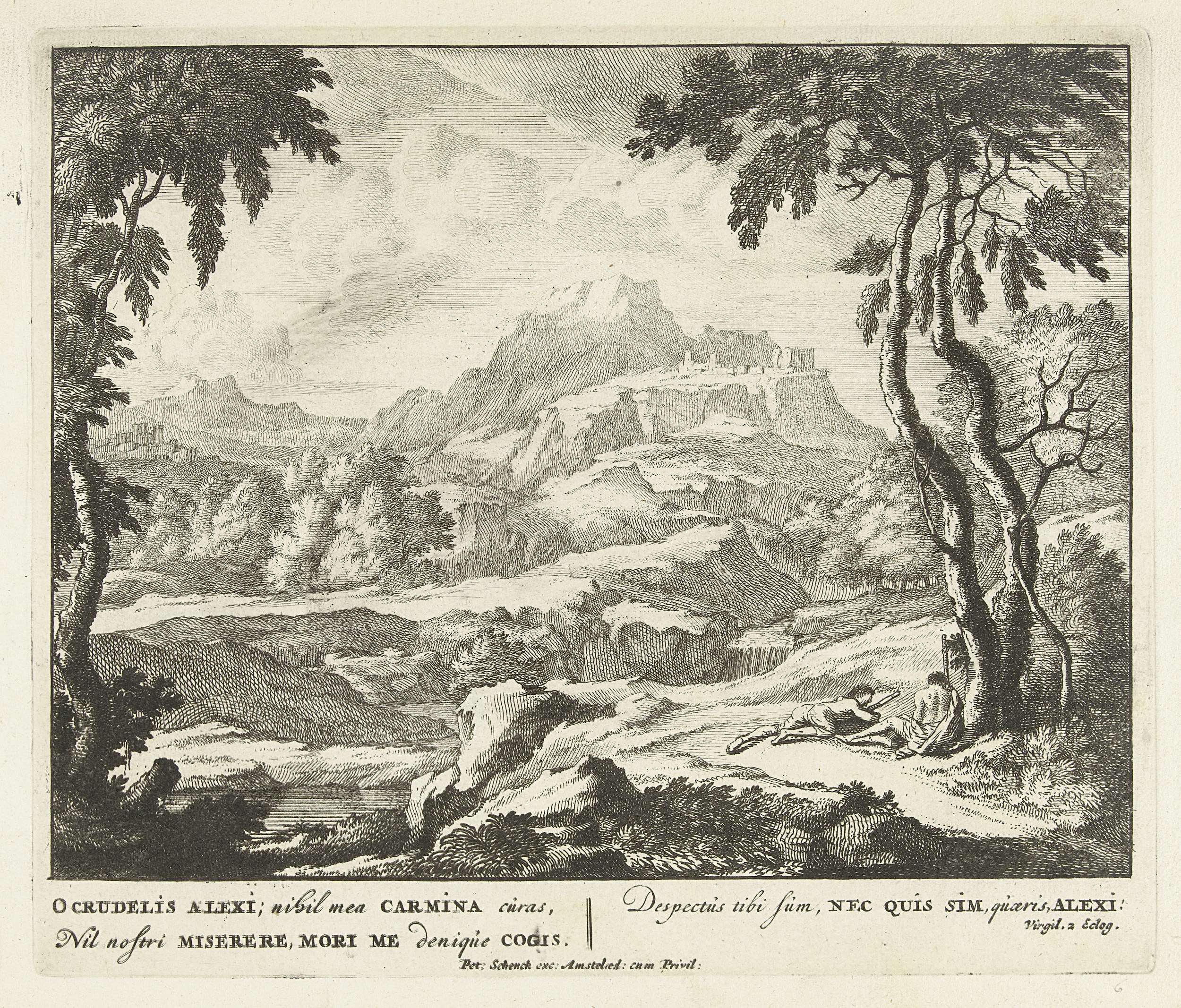 Landschap met twee herders bij een boom