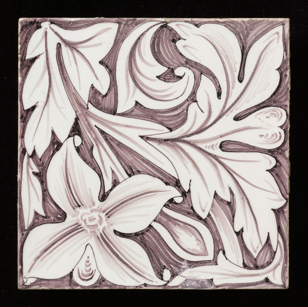 Tegel in tinglazuur, voorstellende decor 'Kraalbloem...