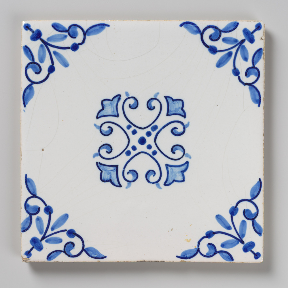 tegel van aardewerk met tinglazuur, voorstellende: o...