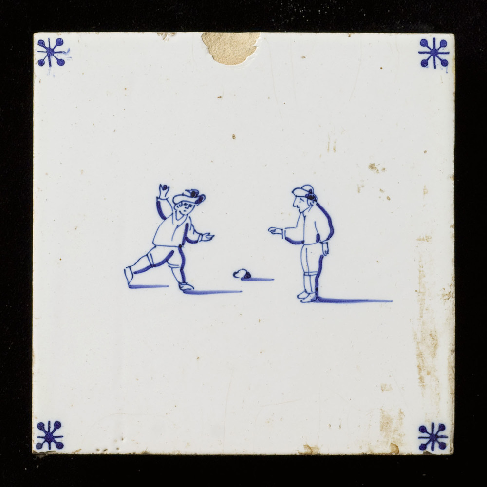 Tegel in tinglazuur, met voorstelling: kinderspel en...