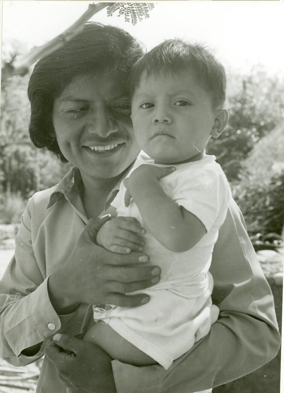 Jorge Real de Domínguez met kind op arm