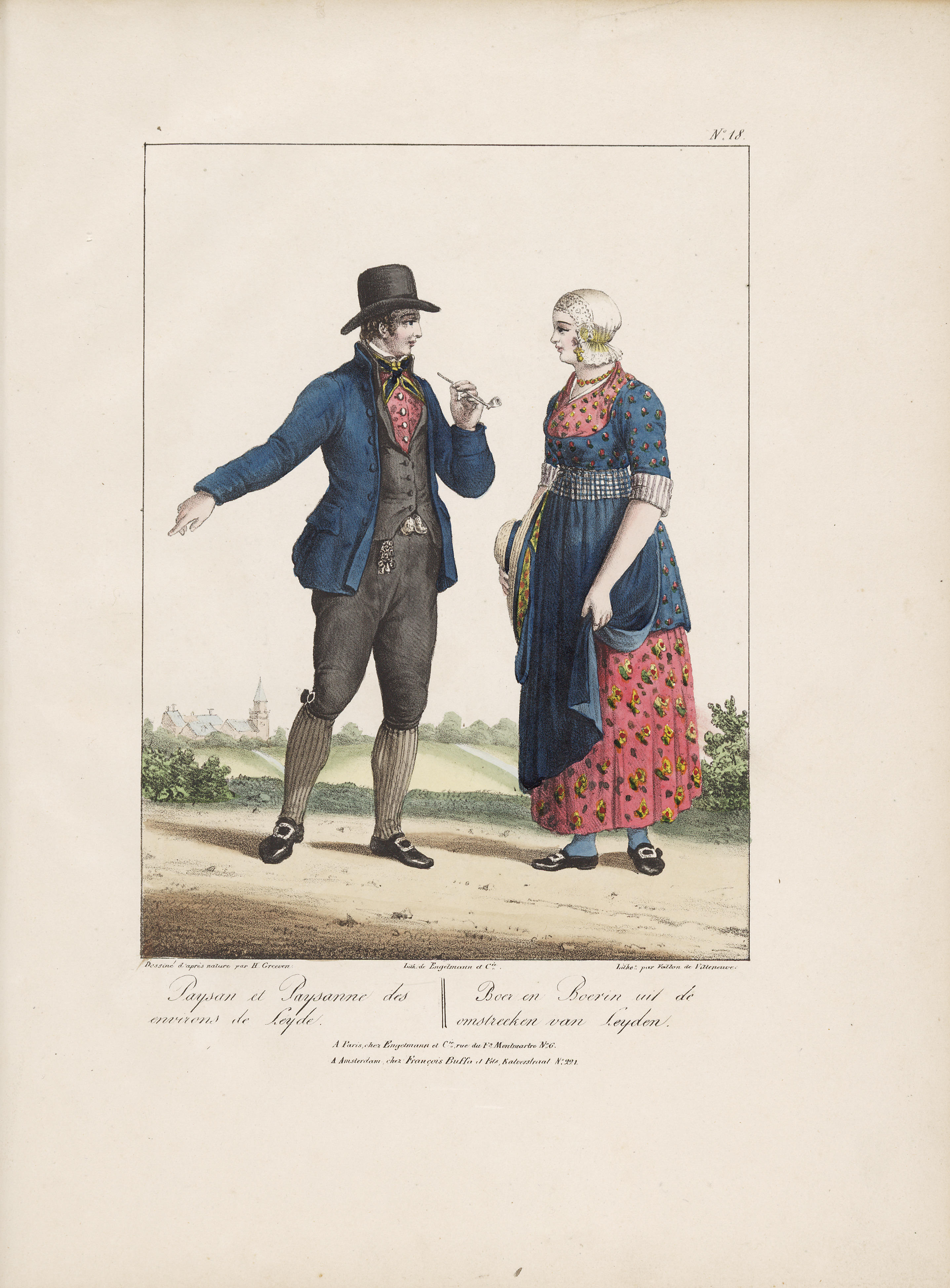 Boer en Boerin uit de omstreeken van Leyden (lithogr...