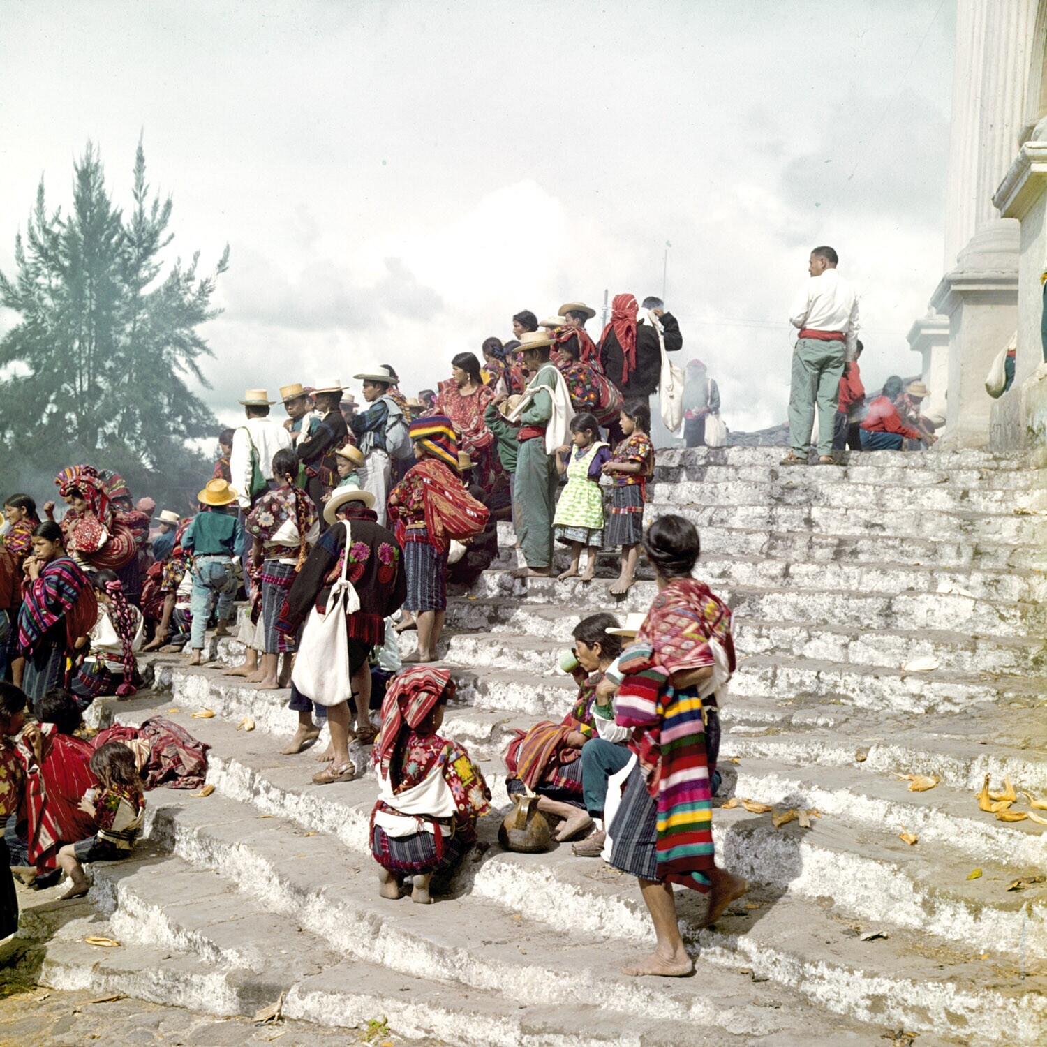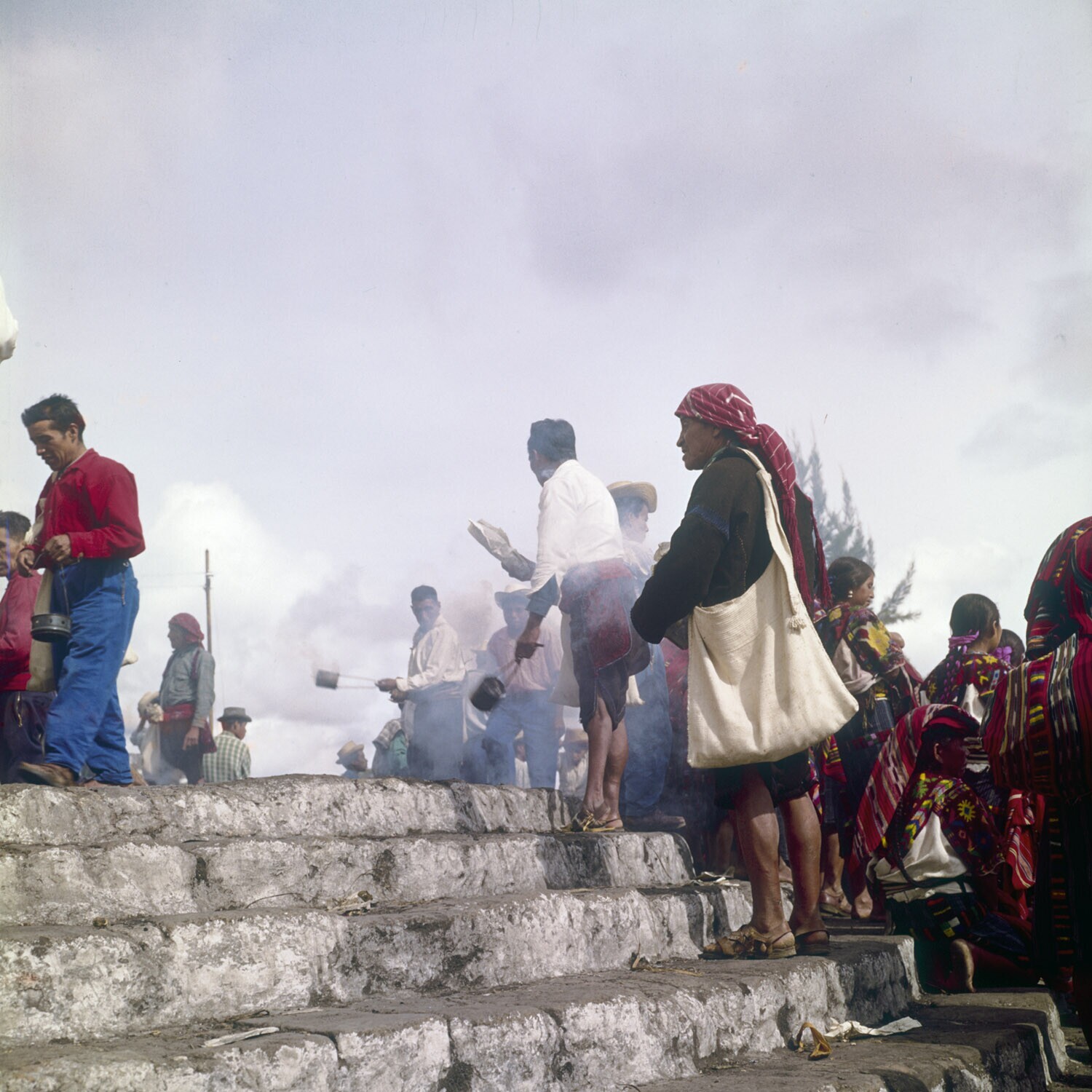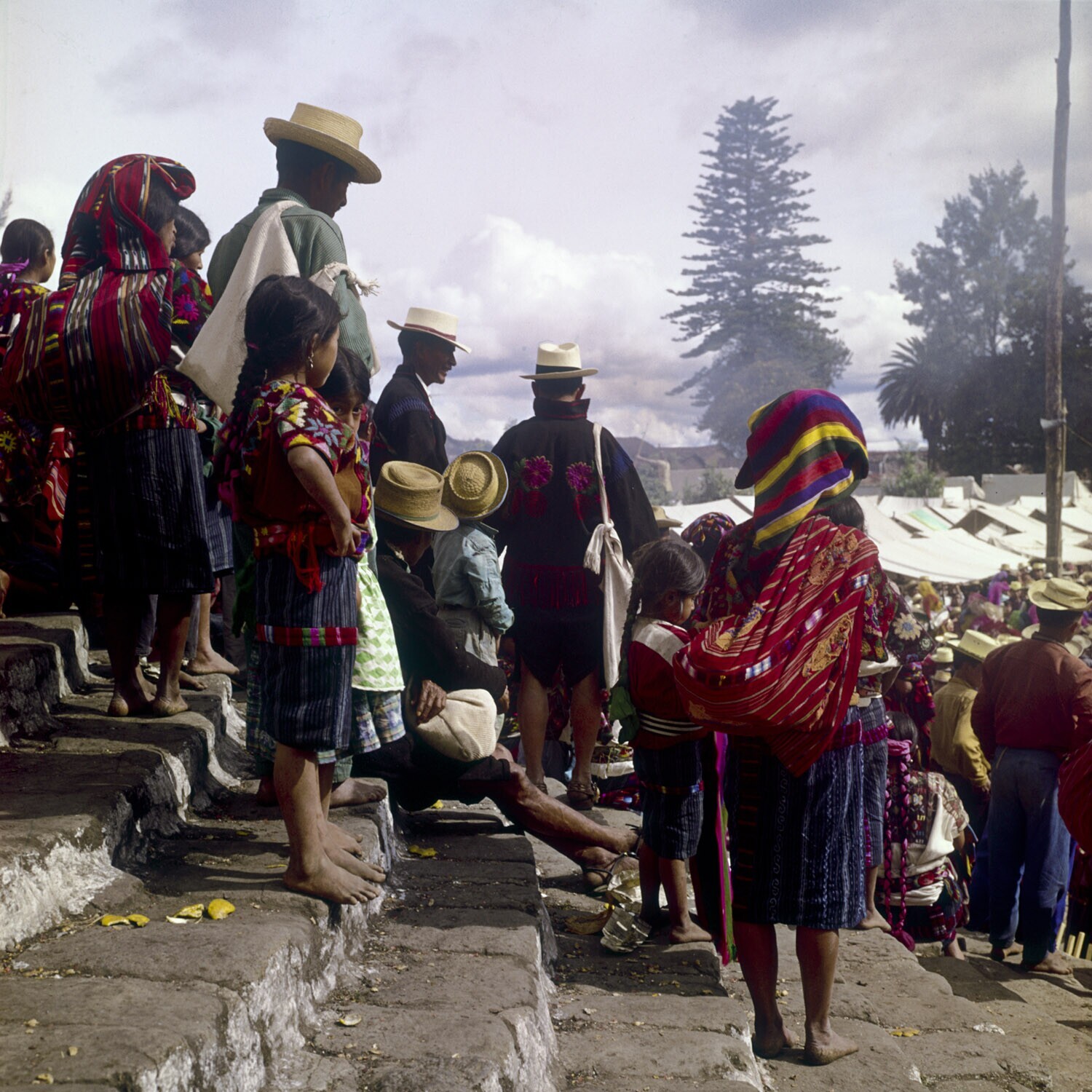 Mensen op de trappen bij de markt in Chichicastenango