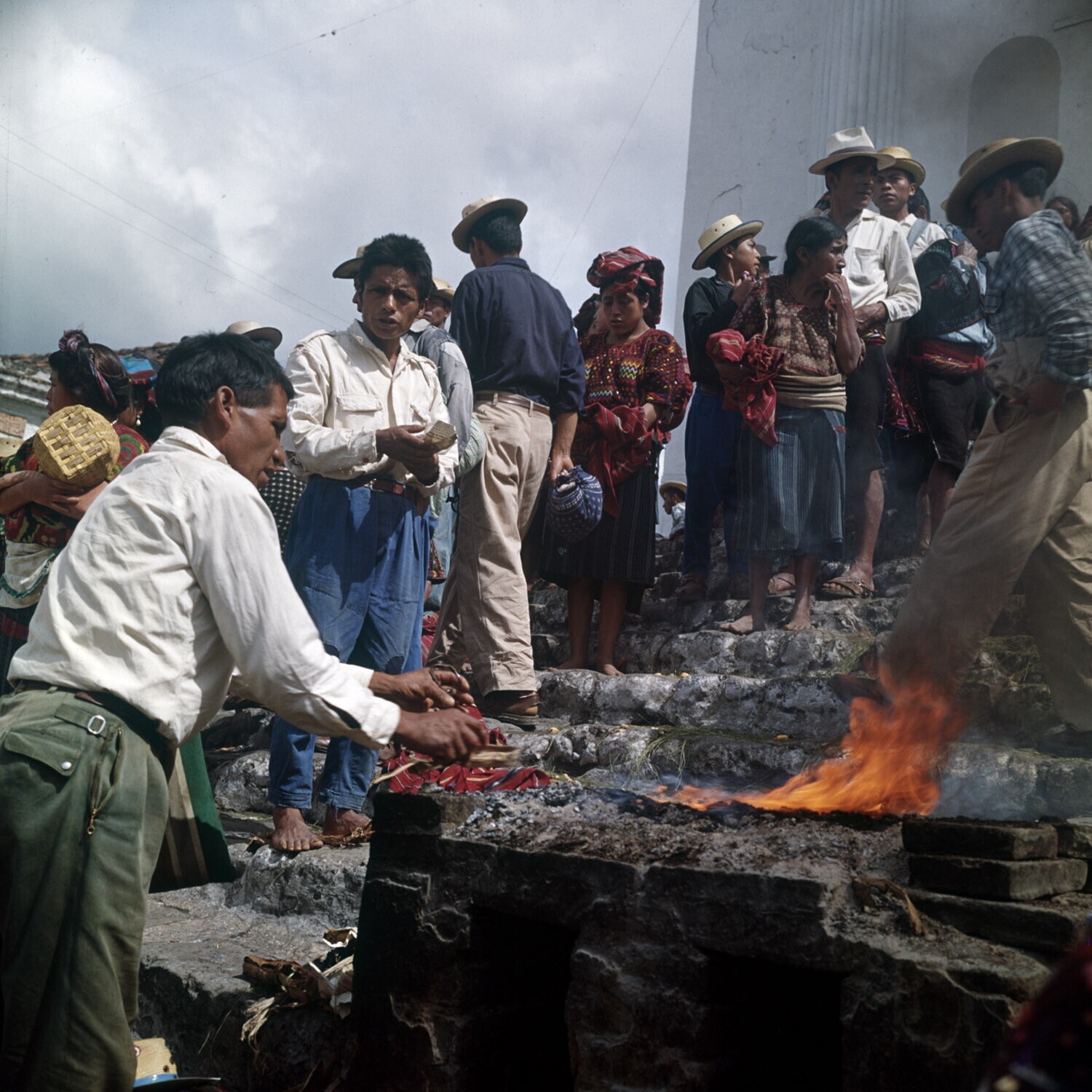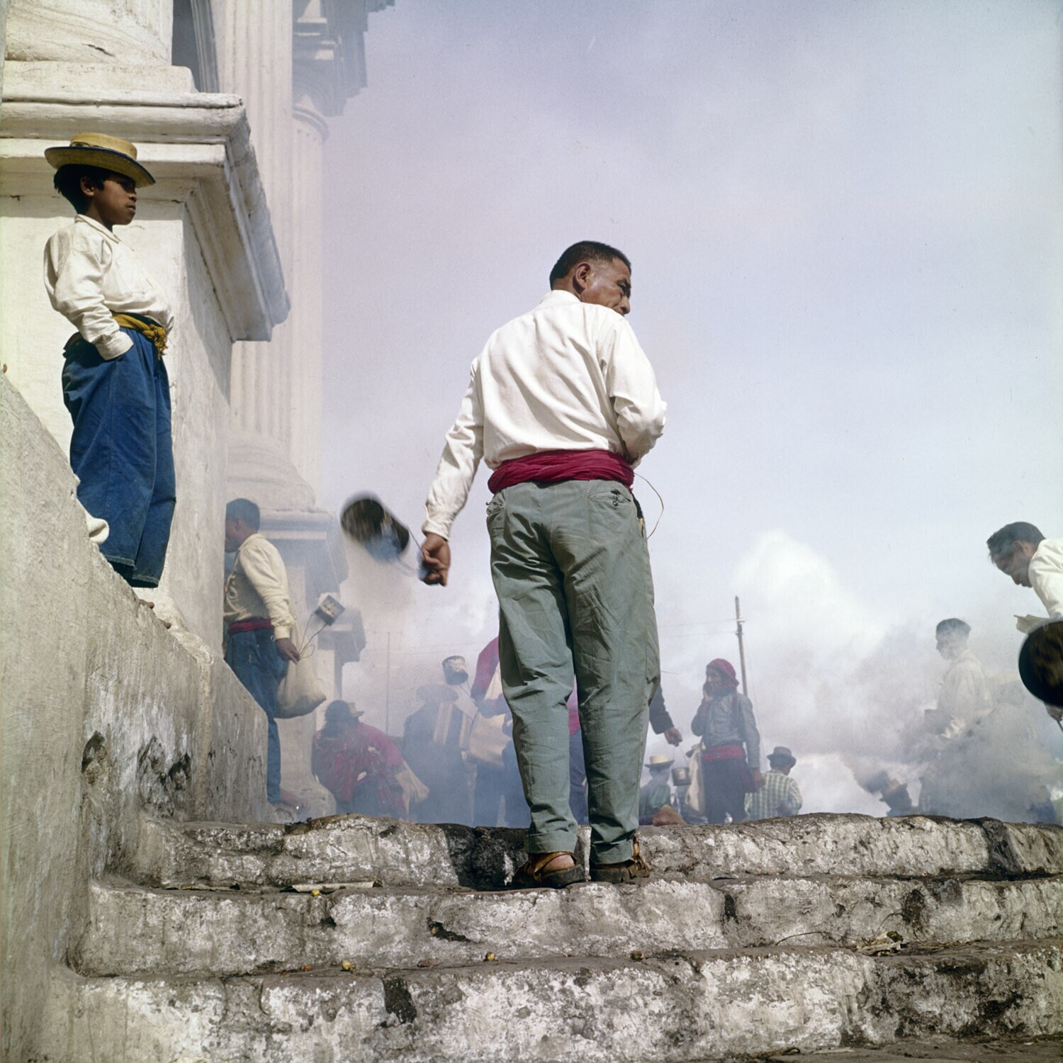 Het branden van wierook op de trappen van de Iglesia...