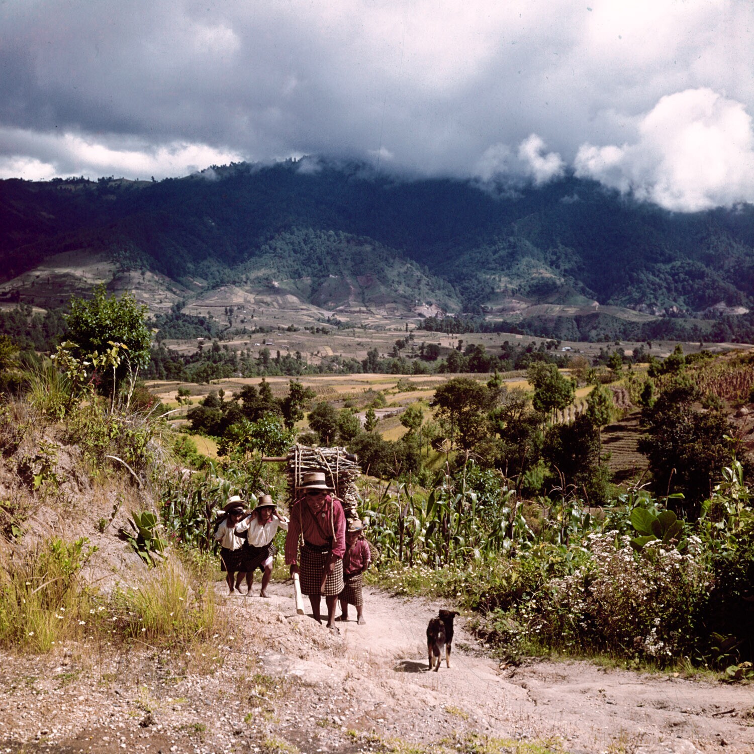 Lasten dragende K'iche' boeren nabij Totonicapán teg...