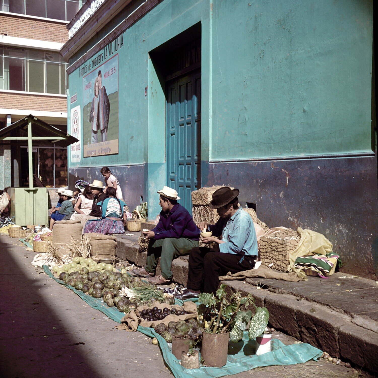 Volkstypen op de trap van de San Tomas kerk.