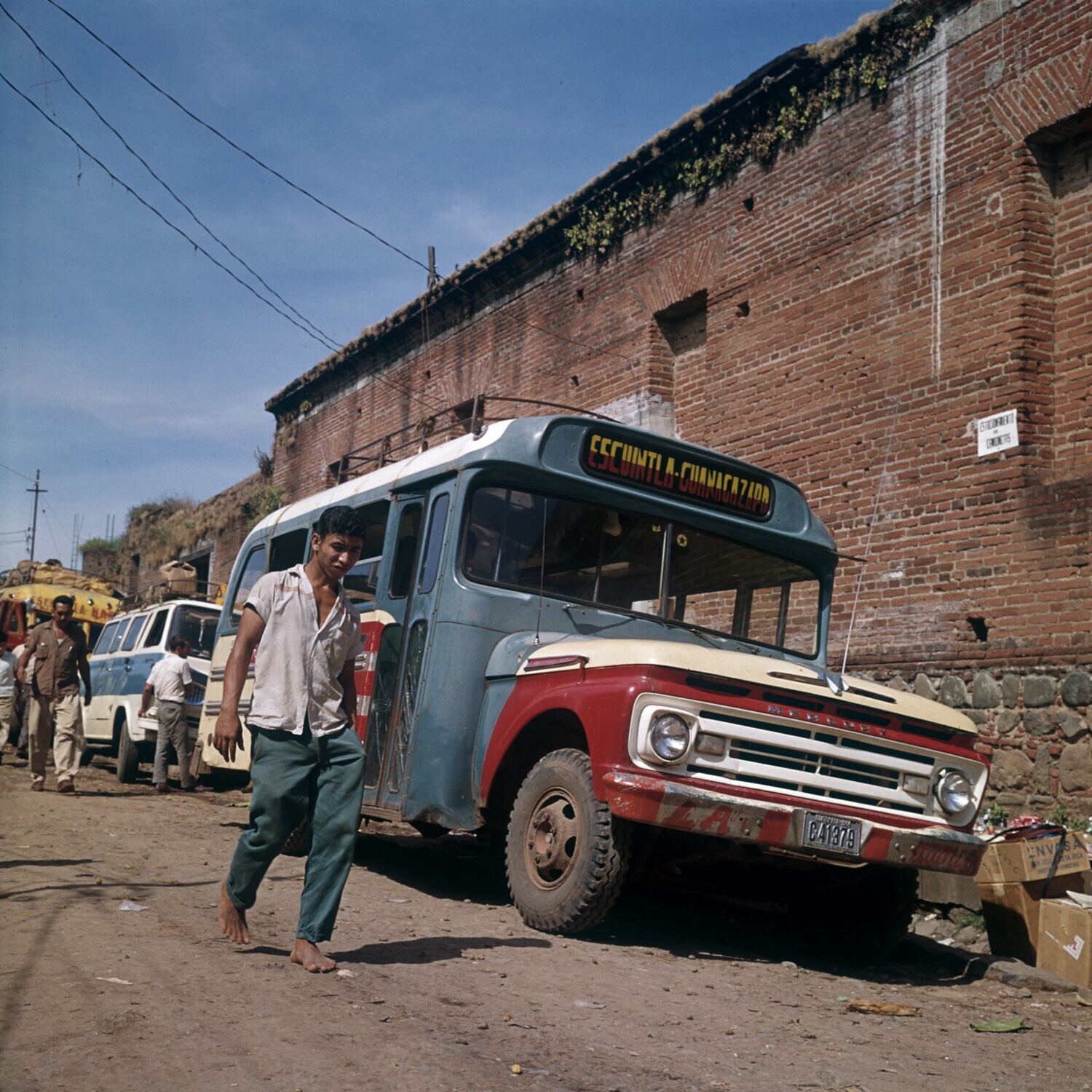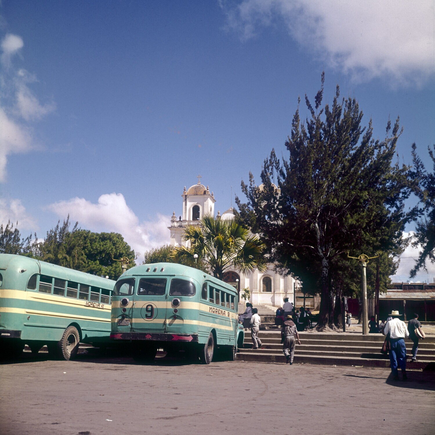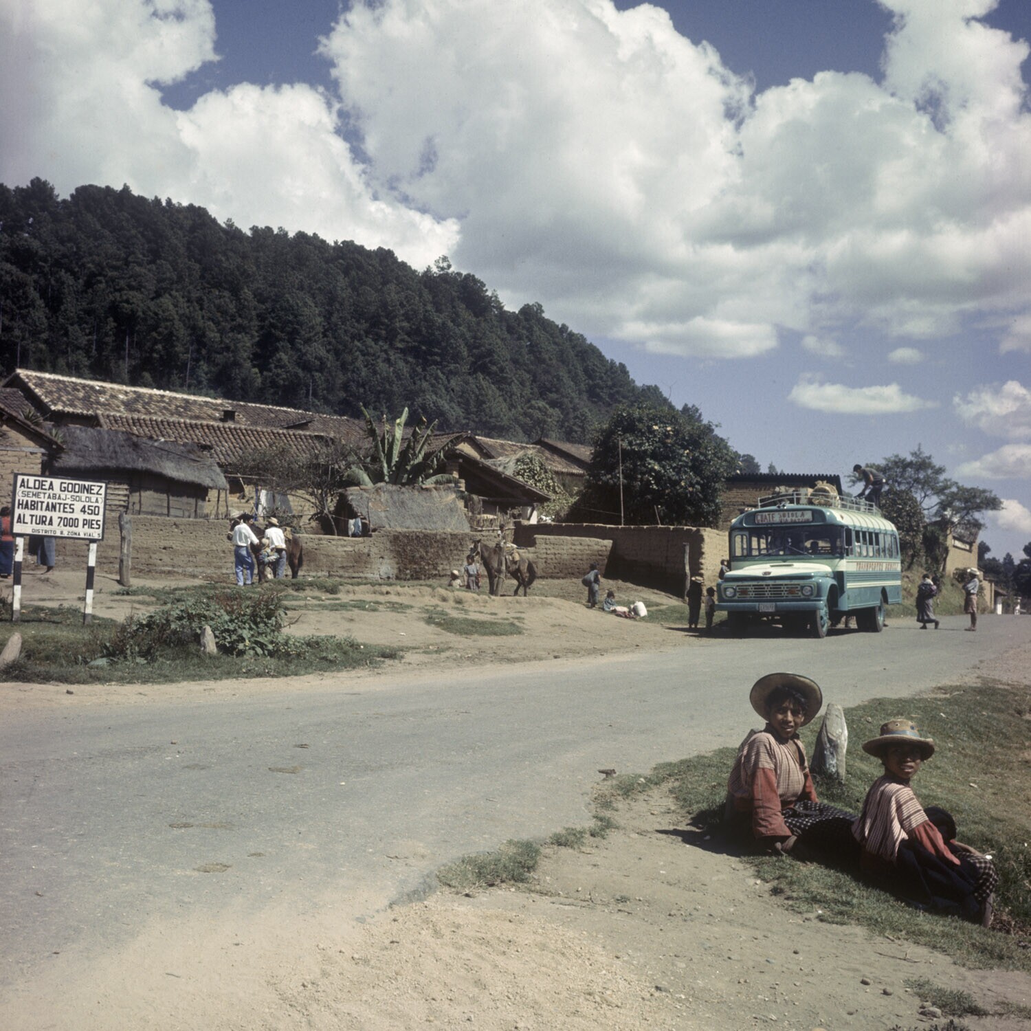 Dorpsplein met bushalte in Mixco.