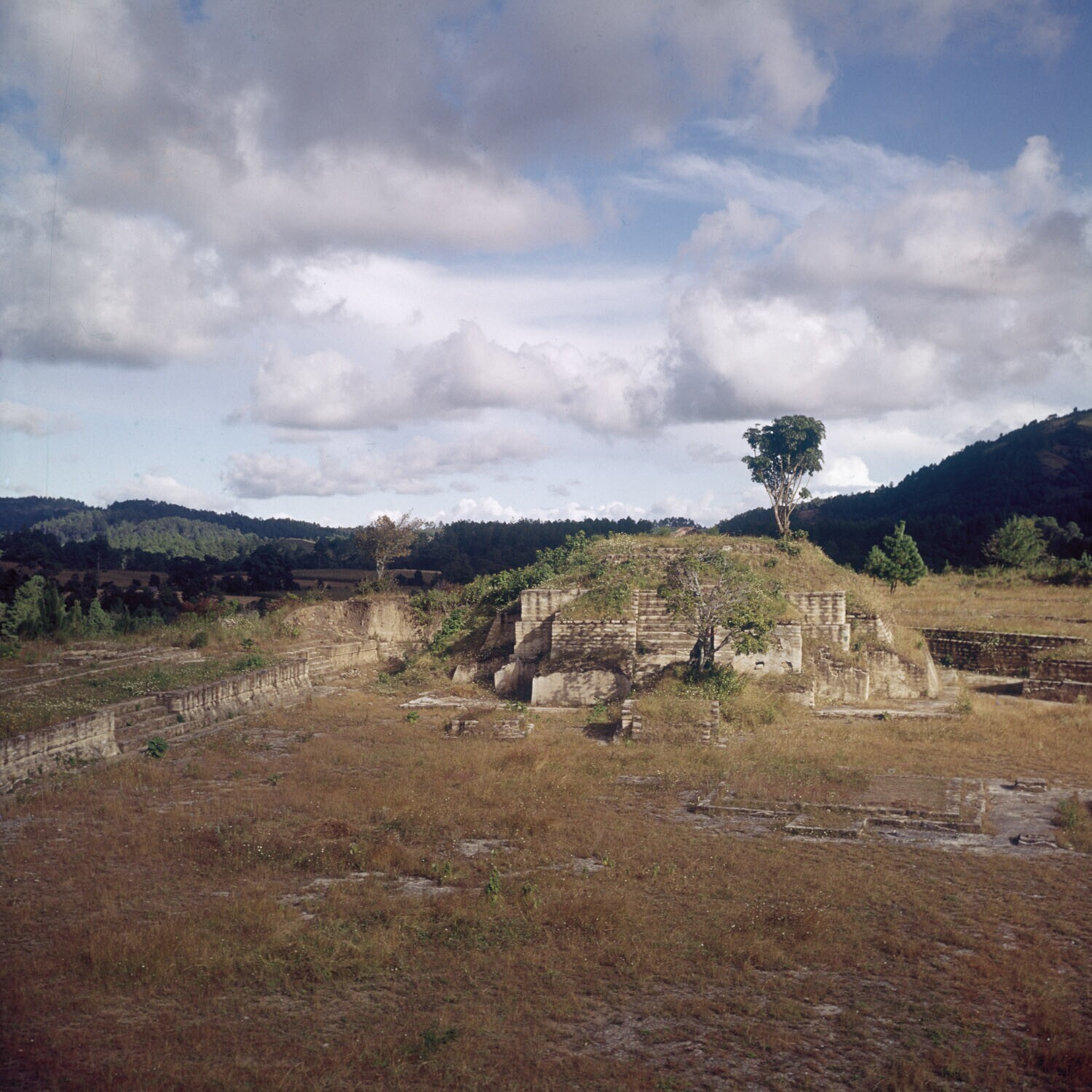 Overzicht van de oude Maja ruines bij Imhxico.