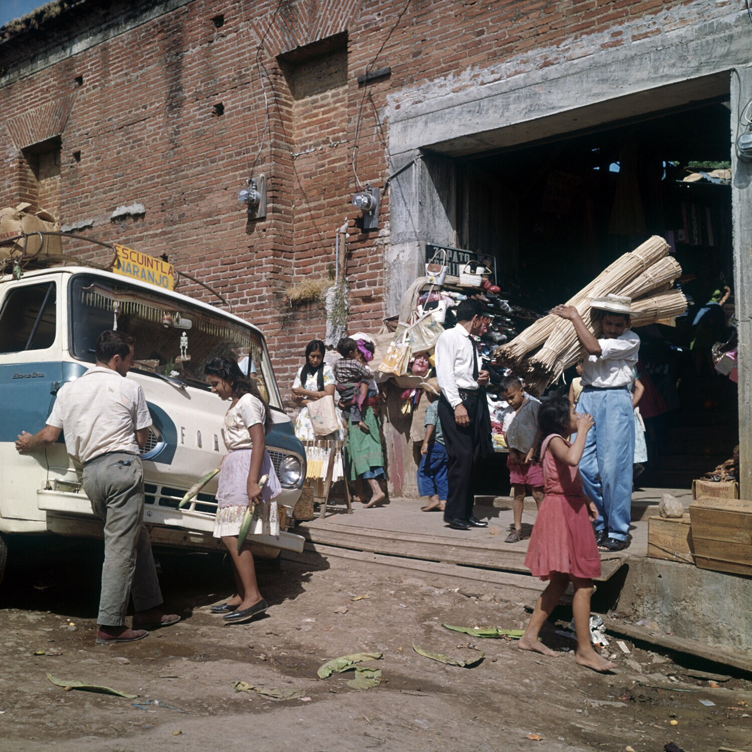 Vrouwen met manden op het hoofd en andere verkopers ...