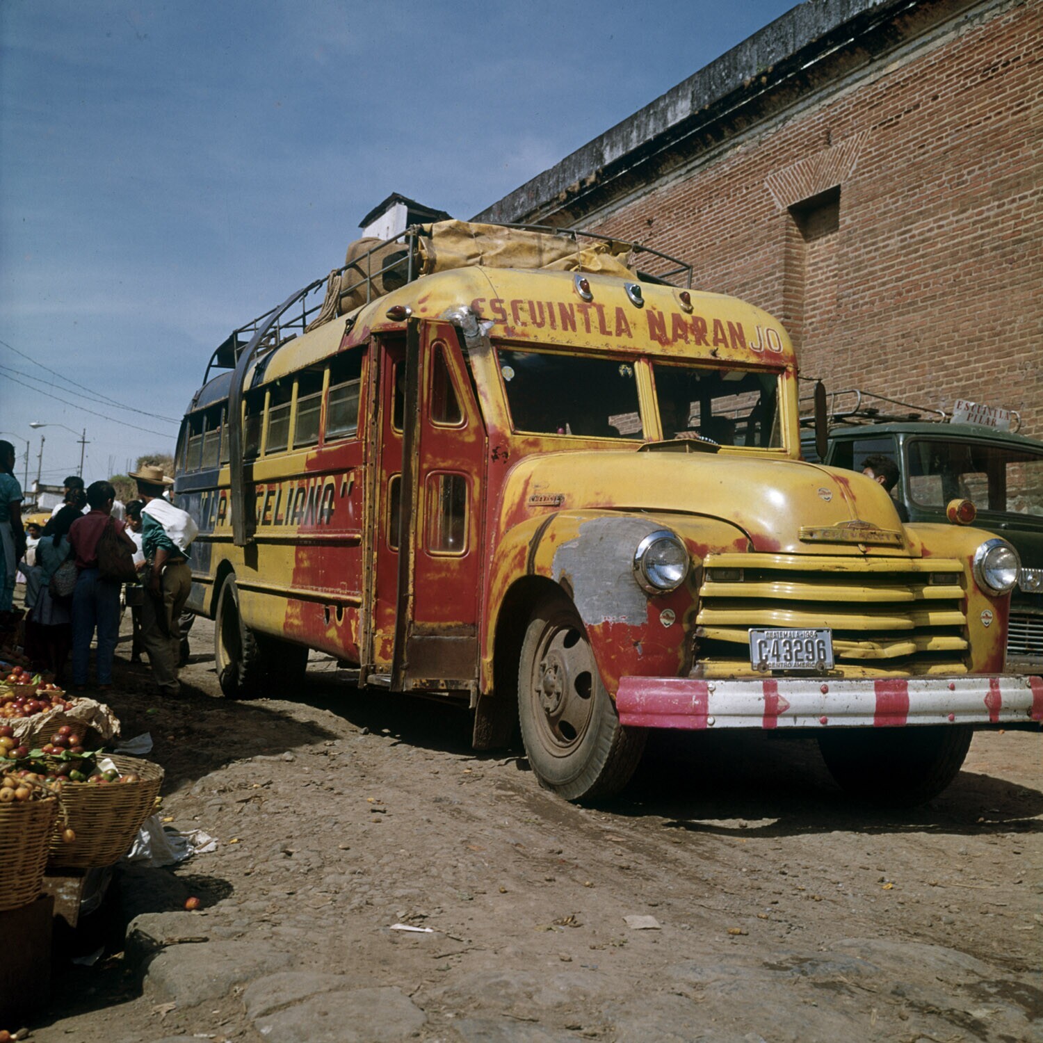 3 vrouwen met manden op het hoofd die op de PanAmeri...