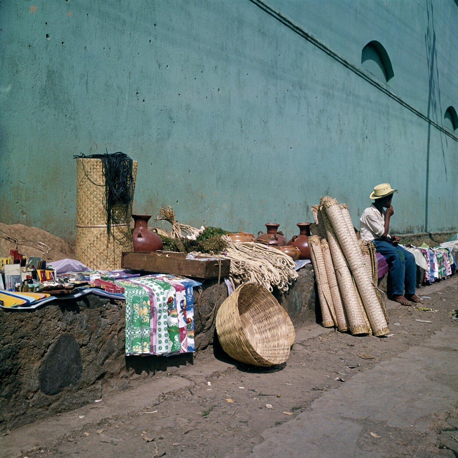 Straatverkoop van o.a.textiel,schoenen, groenten en ...