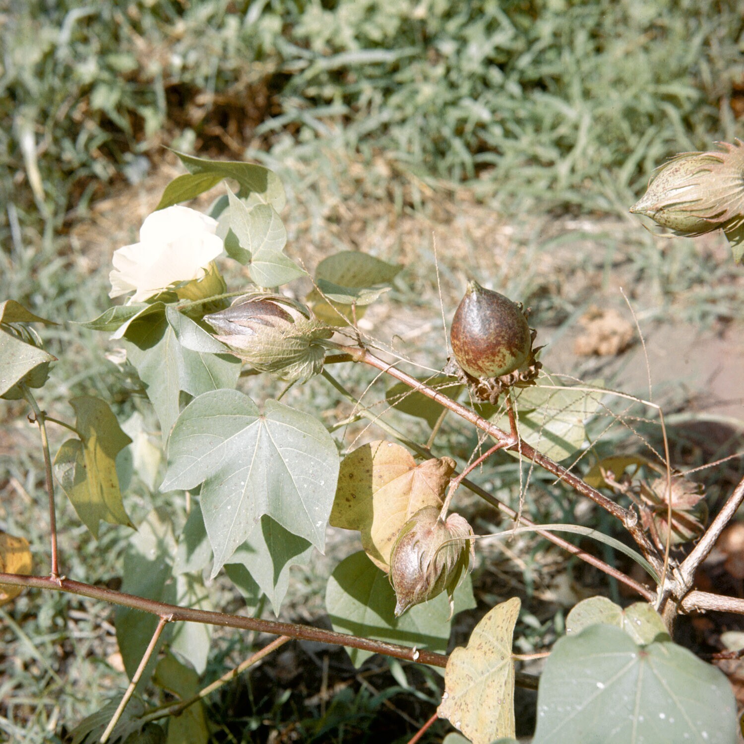 Katoenbloesem met jonge katoenbollen.