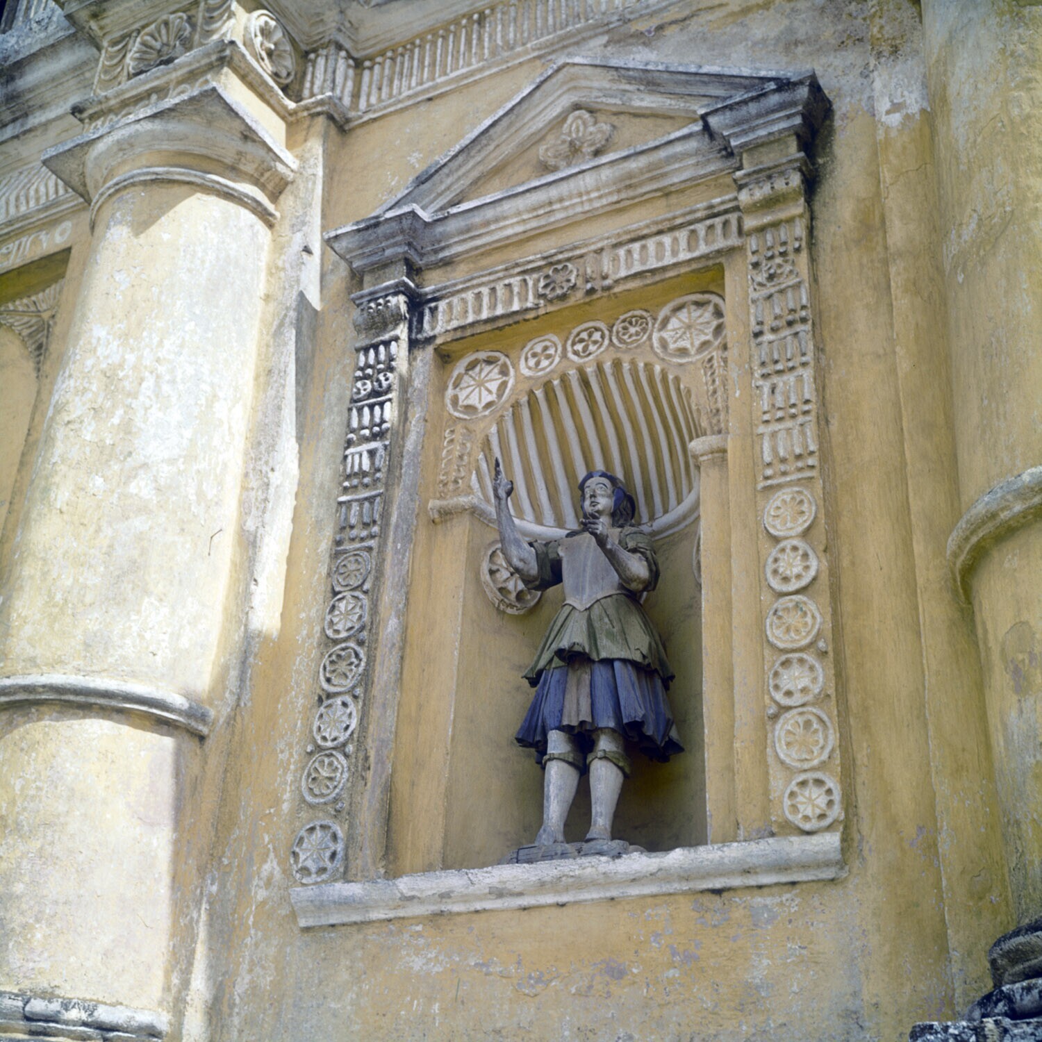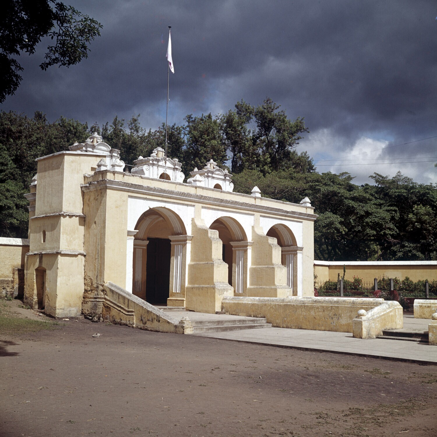 De poort van het klooster Escuela de Cristo in Antigua.