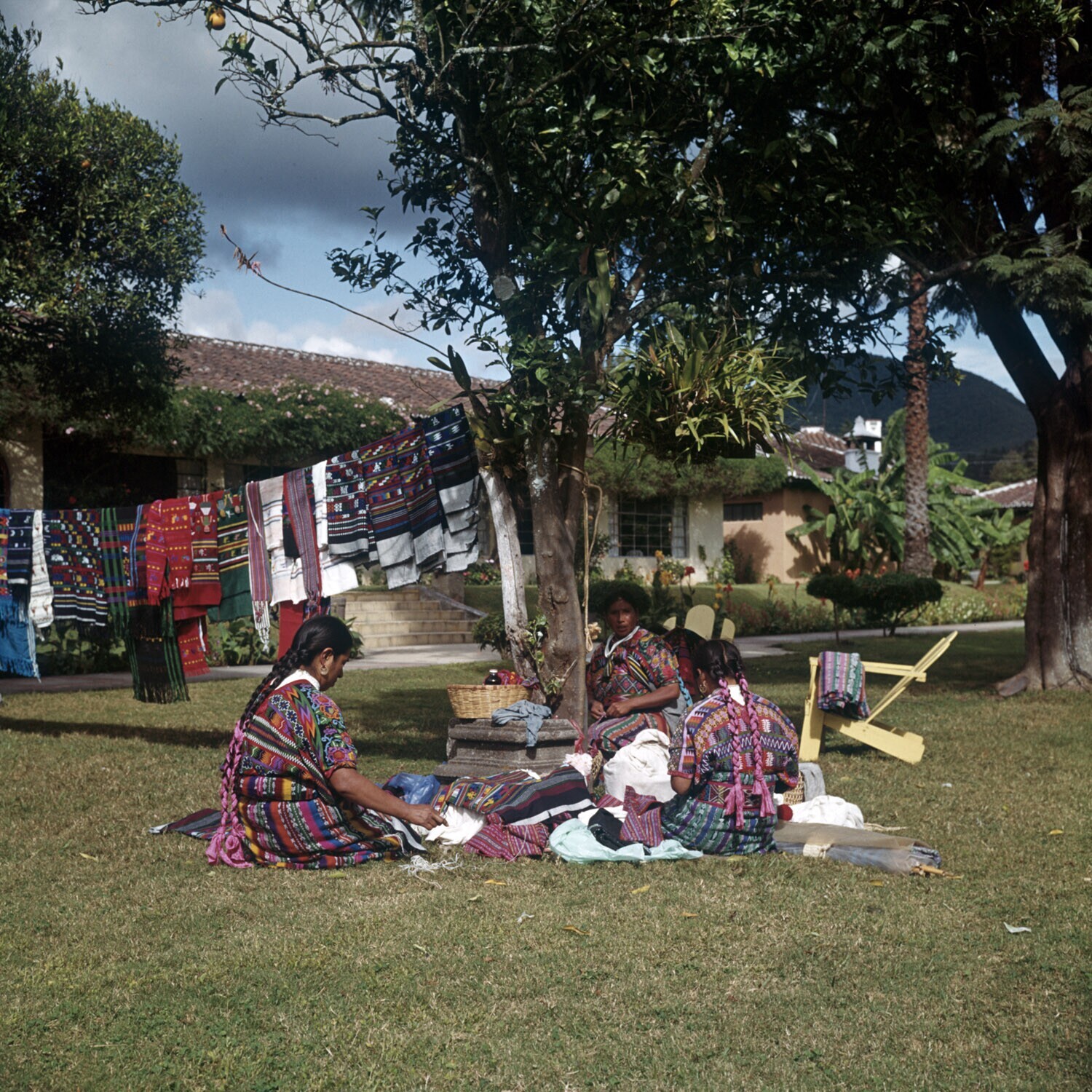 Drie Maya vrouwen bezig met weven, vermoedelijk in M...