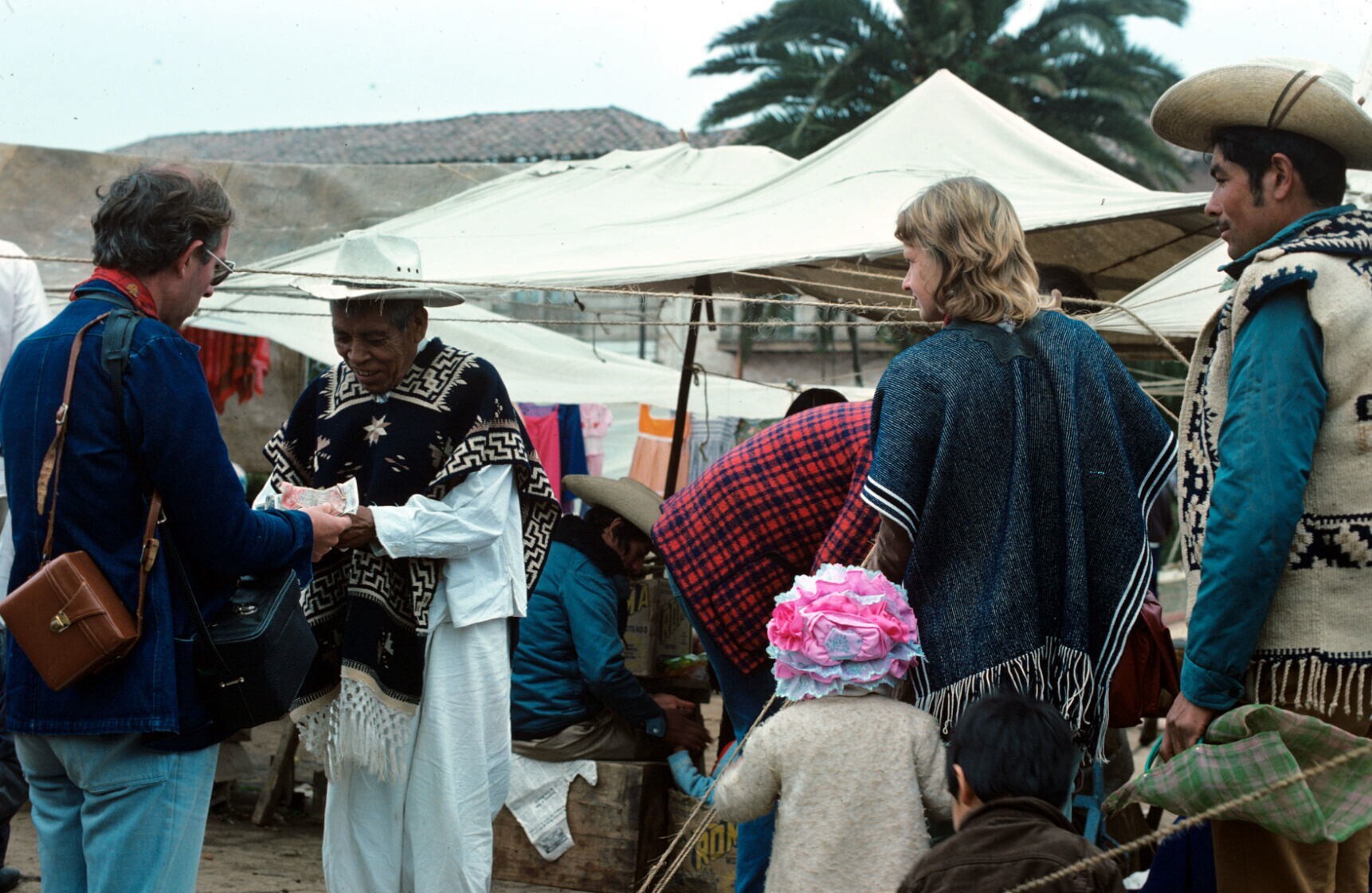 man in jorongo (poncho) op markt