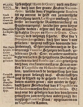 Tekstfragment over Dieppe dat werd gebombardeerd doo...