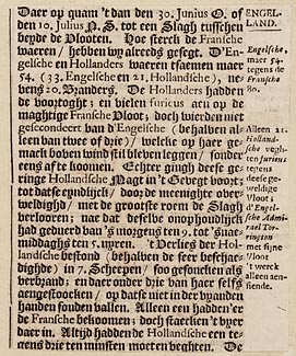 Tekstfragment over de zeeslag bij Kaap La Hogue