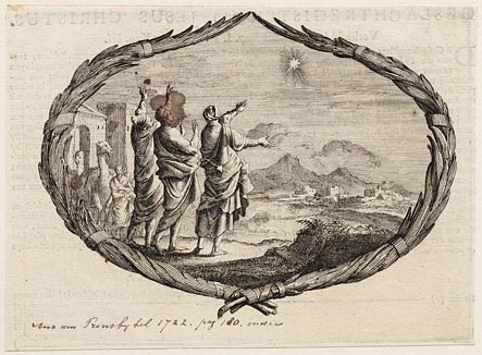 De drie wijzen uit het oosten zien de ster boven Bet...