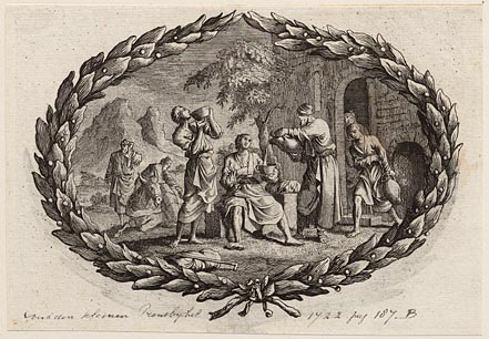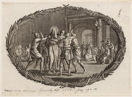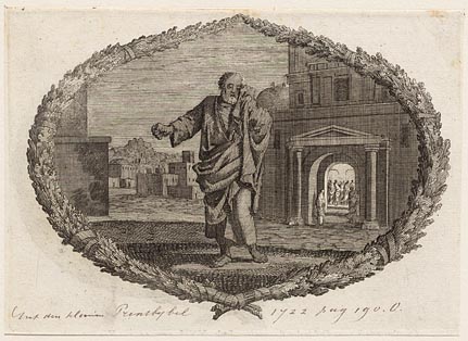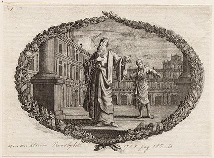 Paulus ziet toe hoe de voor hem zittende Agabus zich...