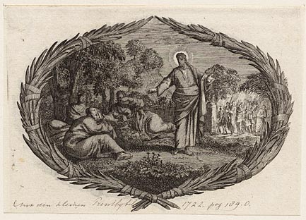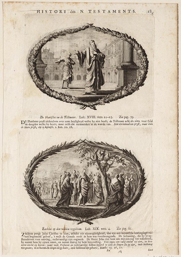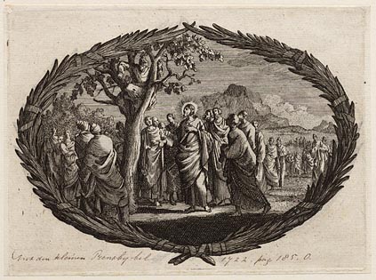 Jezus met zijn discipelen spreekt Zacheüs aan die in...
