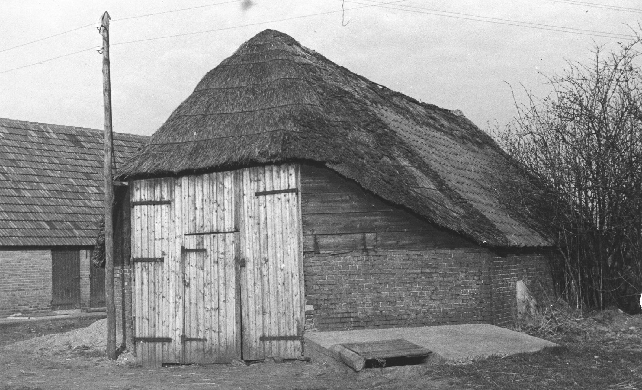 Maisschuur, Almen, 1938 (zwart-wit foto)
