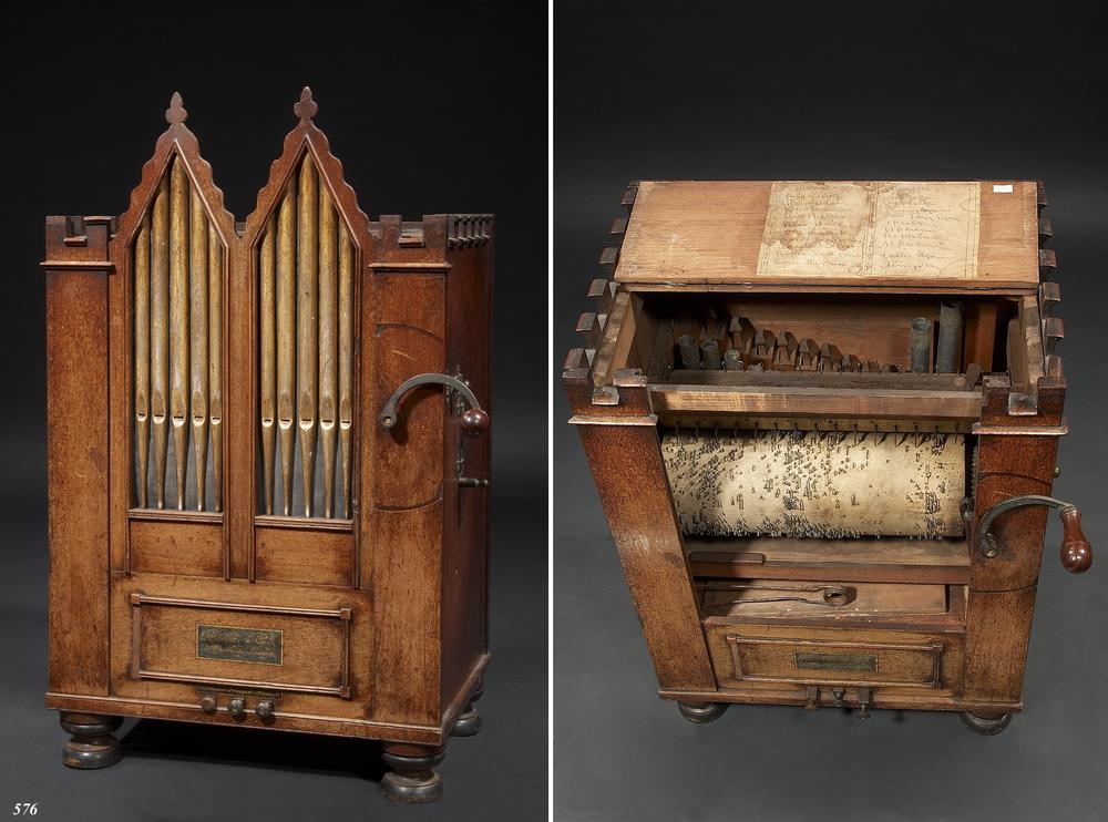 Cilinder in kistje behorend bij draaiorgel