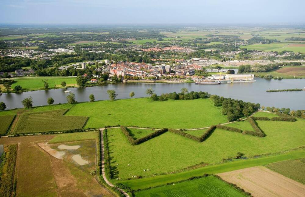Gezicht op de Valkhofburcht en de stadsmuren aan de ...