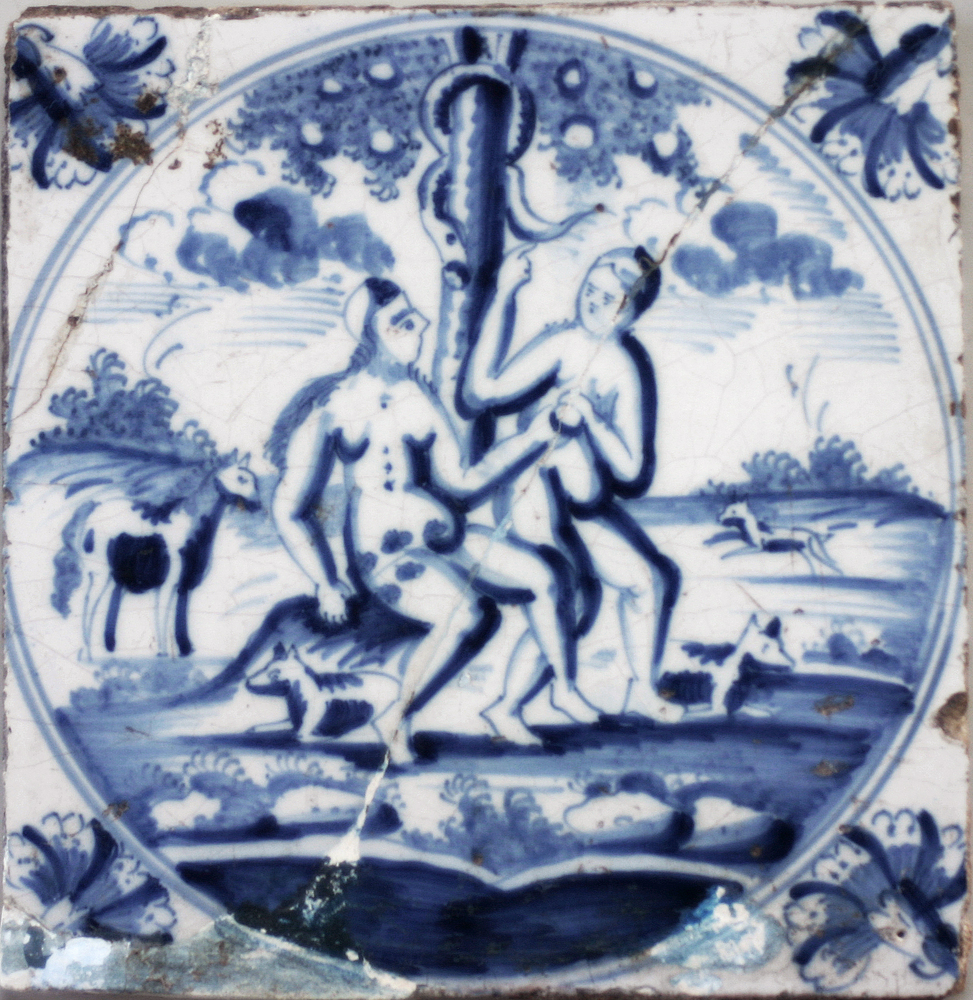 tegel van keramiek met tinglazuur, voorstellende: De...
