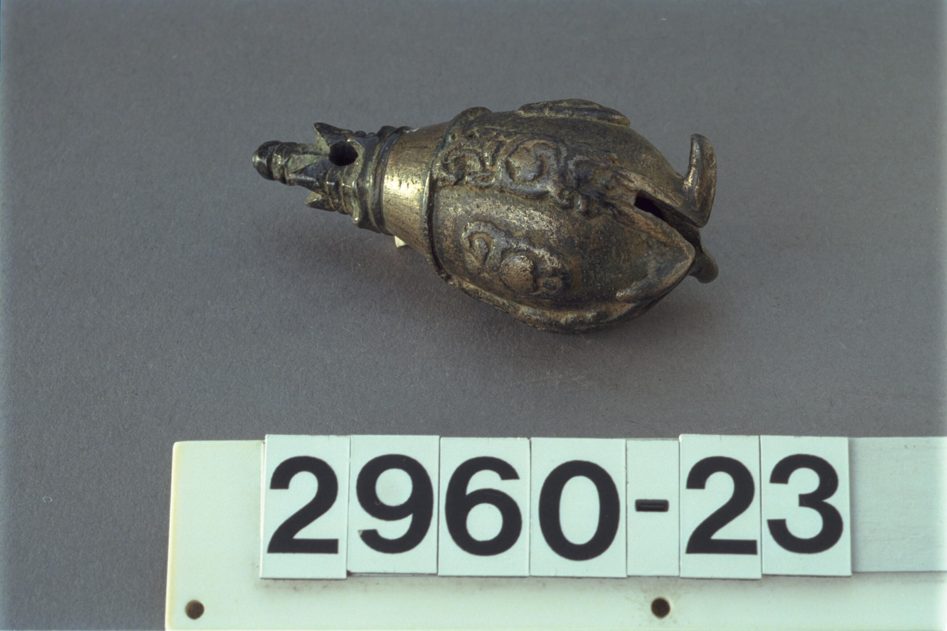 Indo-Javaans handvat van een bidschel met klepel met...