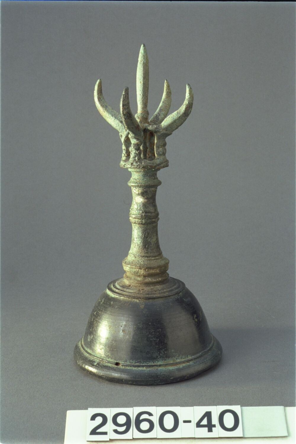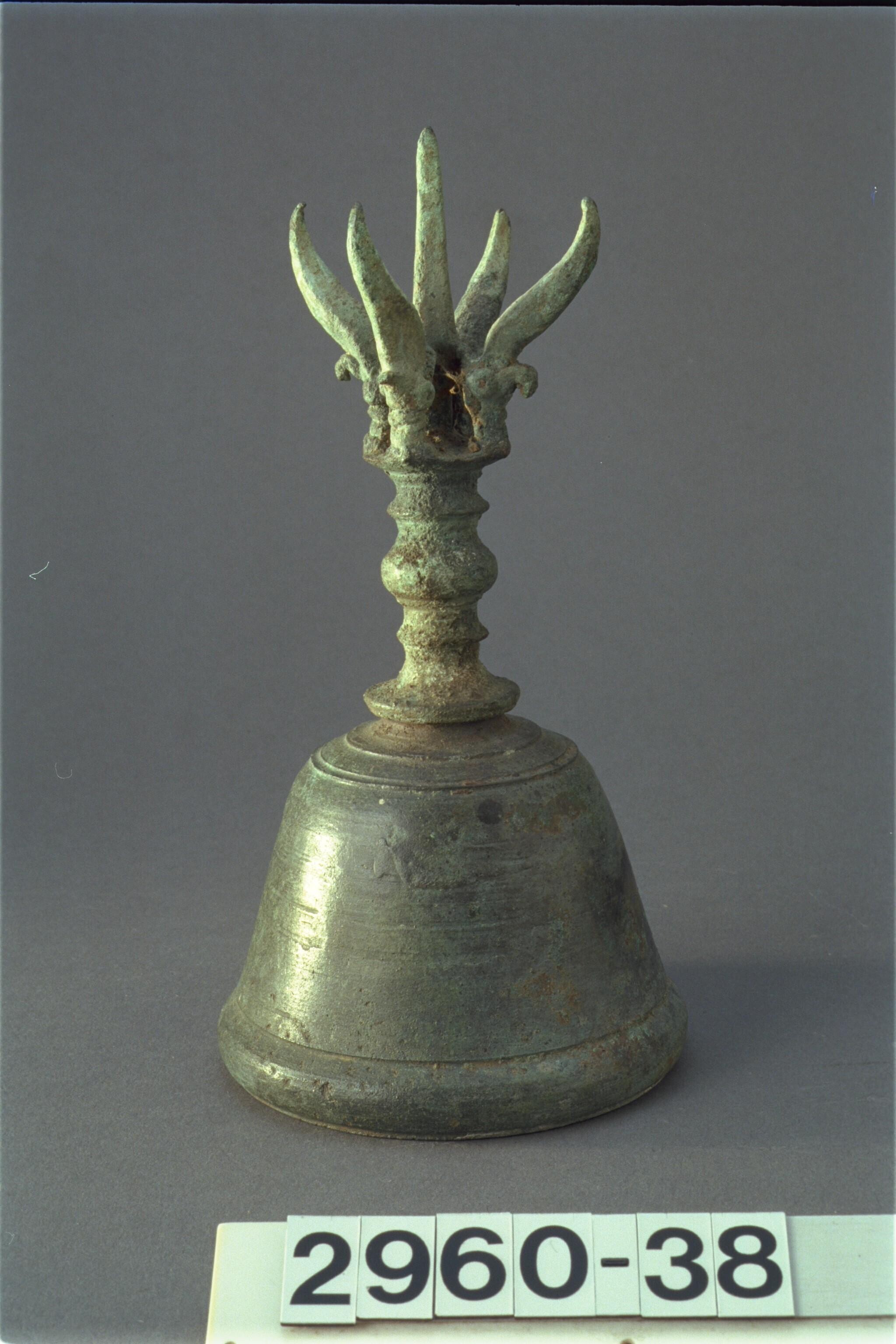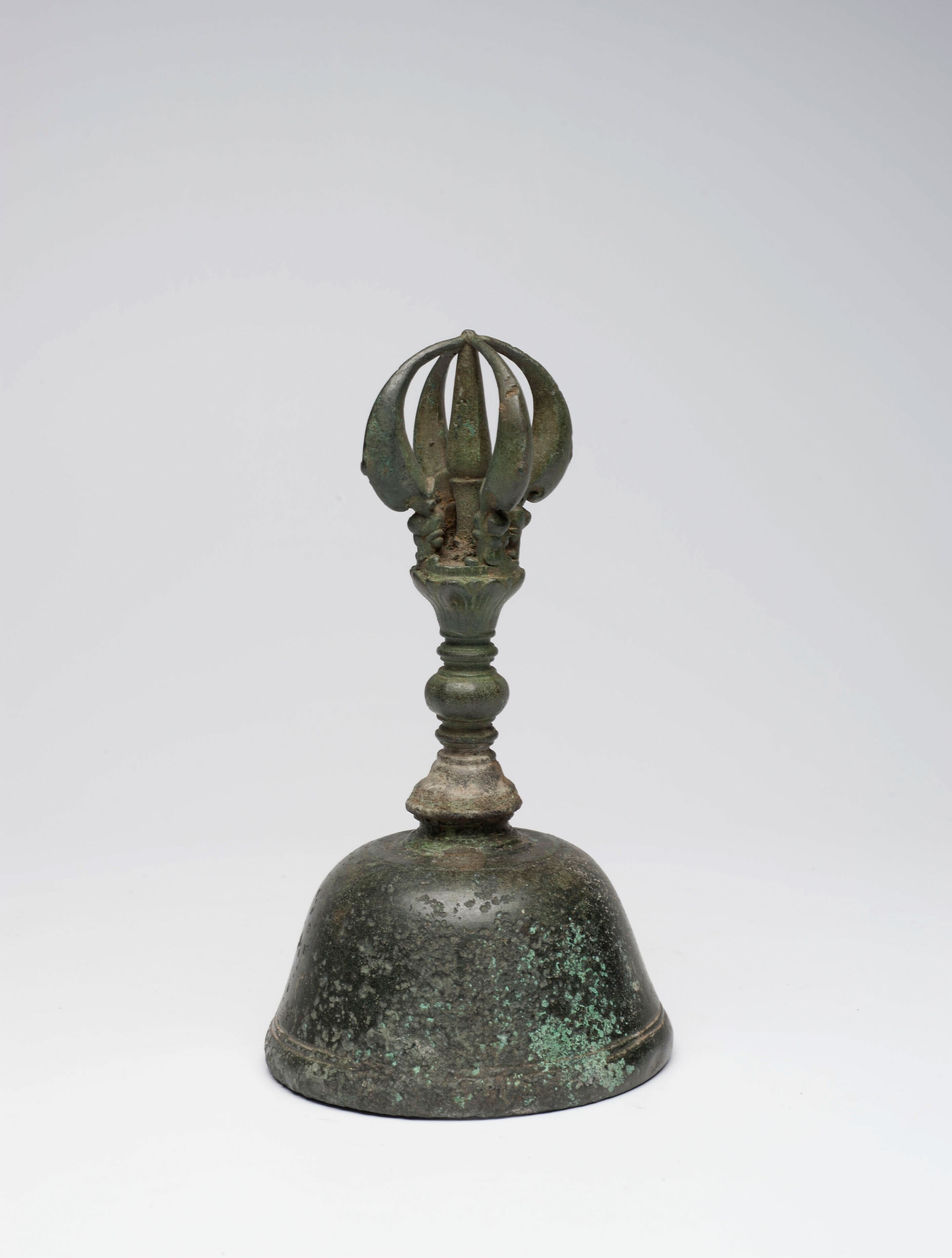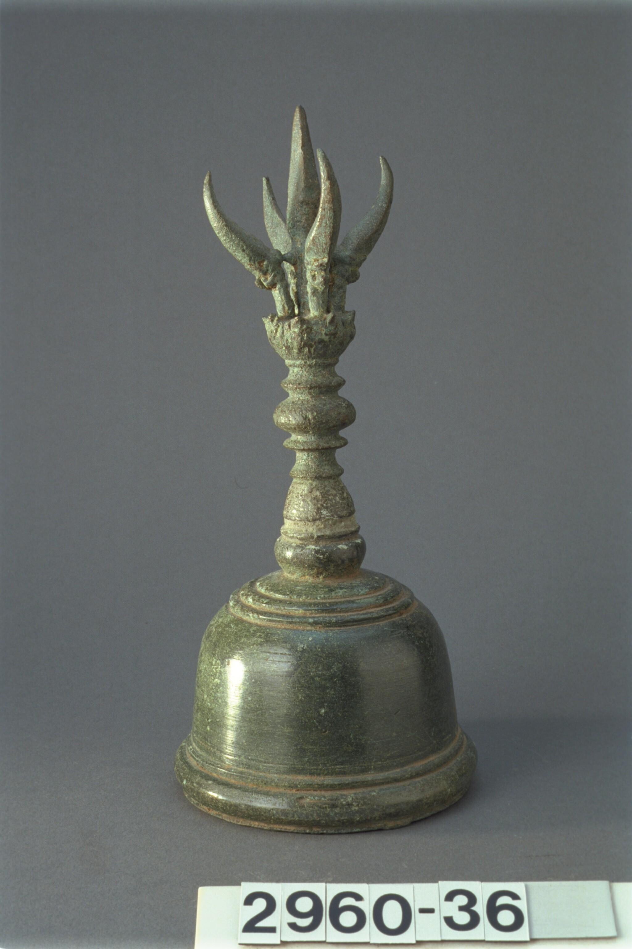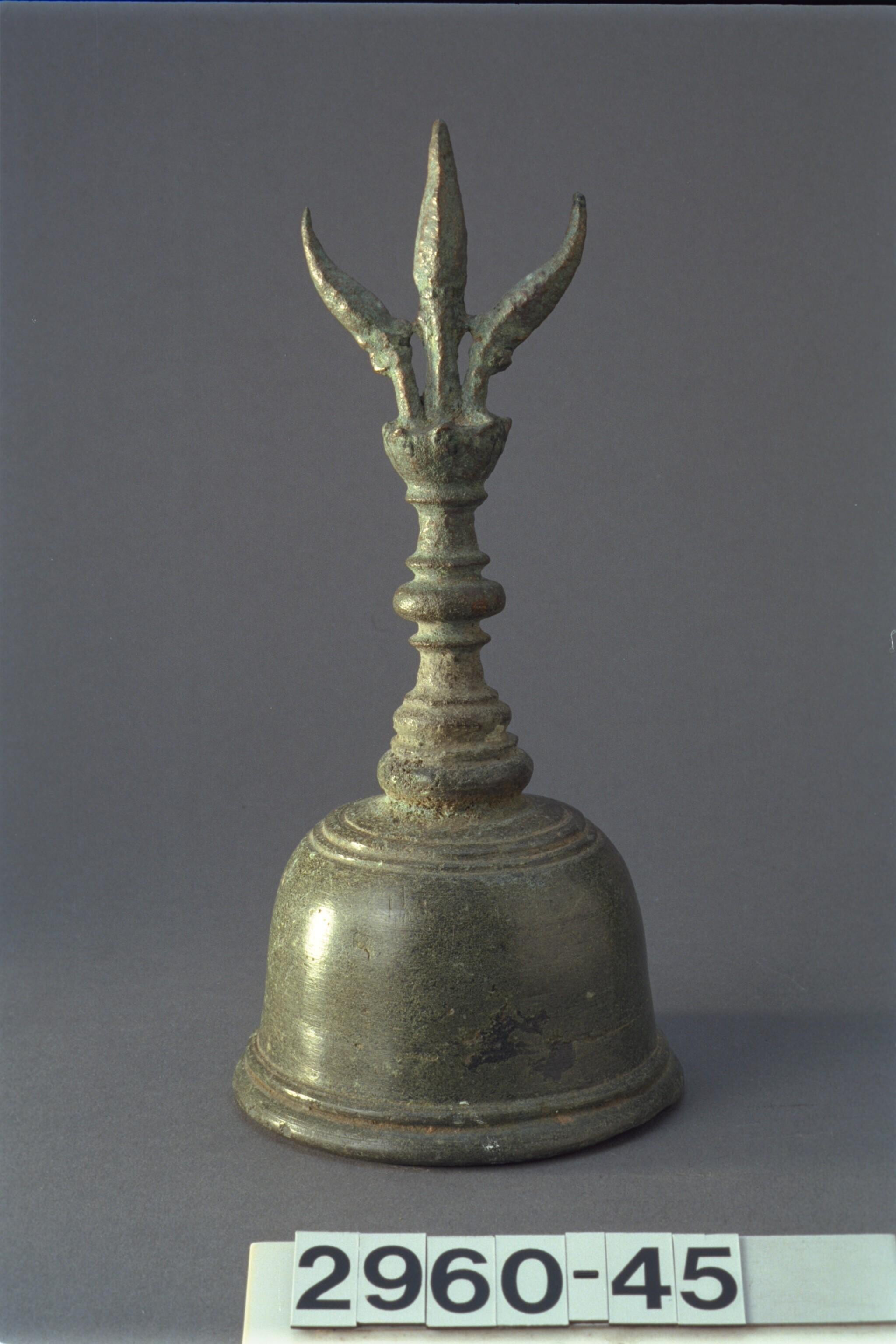 Indo-Javaanse bronzen priesterbel gesloten drietandbel