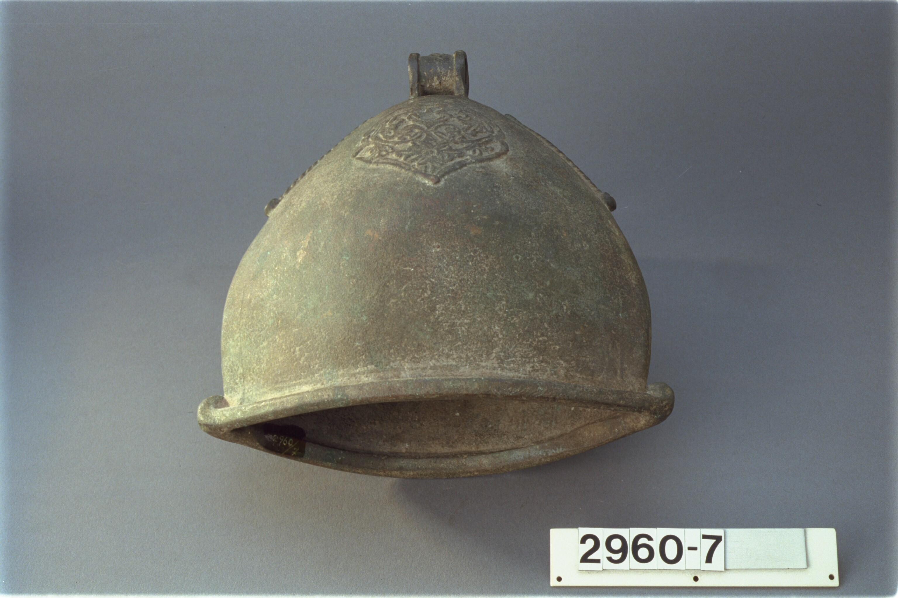 Bidschel met handvat en klepel (a) topstuk los (b) s...