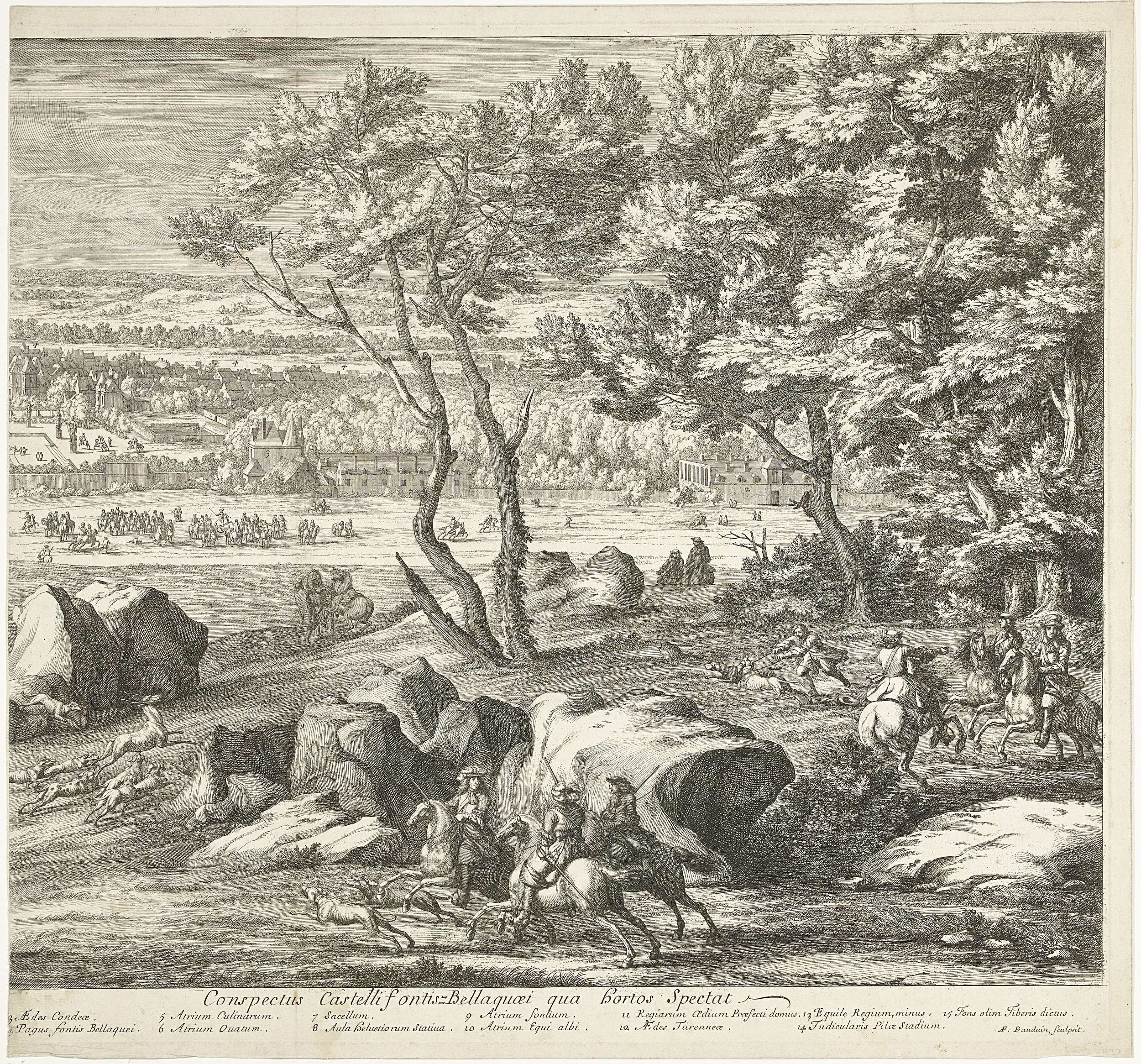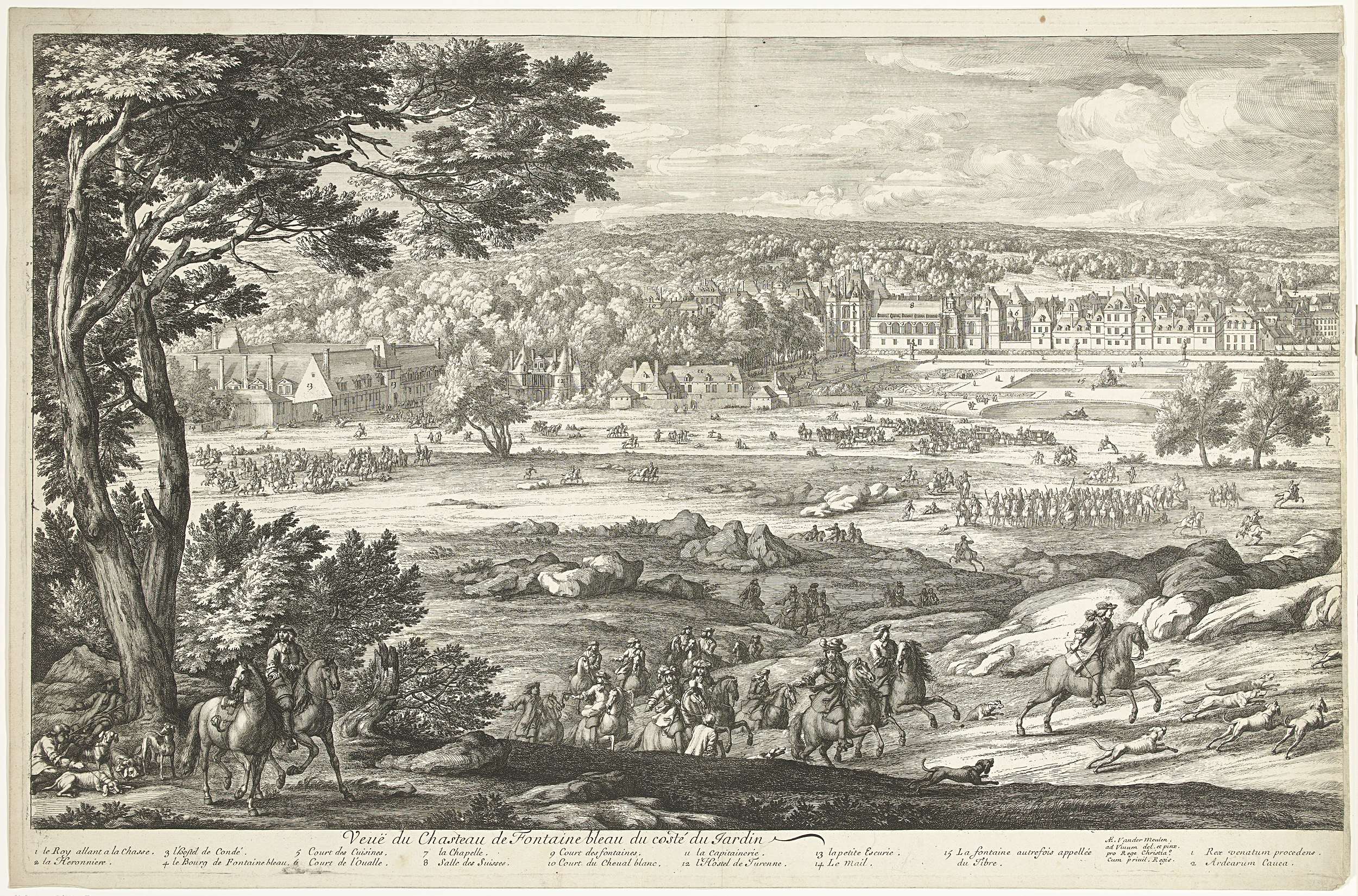 Gezicht op het kasteel van Fontainebleau (linkerblad)